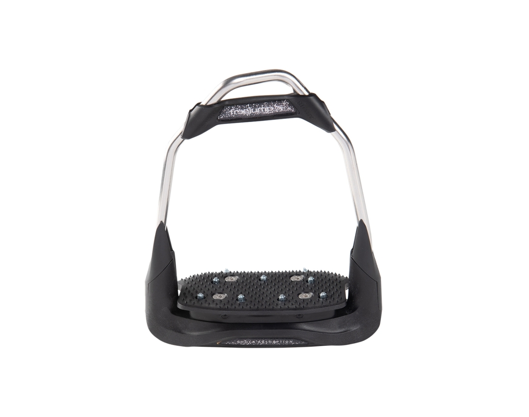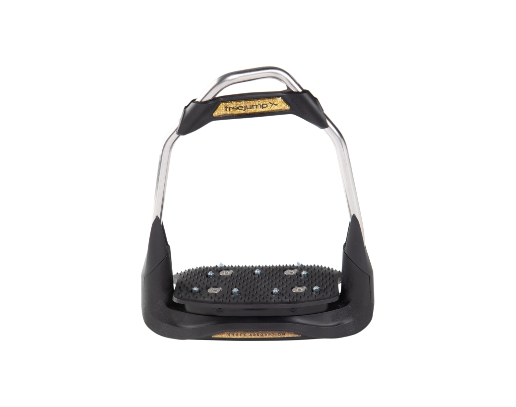 Die Unterseite des AIR'S Steigbügels ist mit der Freejump-Stoßdämpfungstechnologie ausgestattet, die eine Elastomersohle mit einem mechanischen Gelenk für optimale Stoßdämpfung kombiniert. Dadurch entsteht ein echter „Luftkissen“-Effekt, der außergewöhnlichen Komfort gewährleistet.