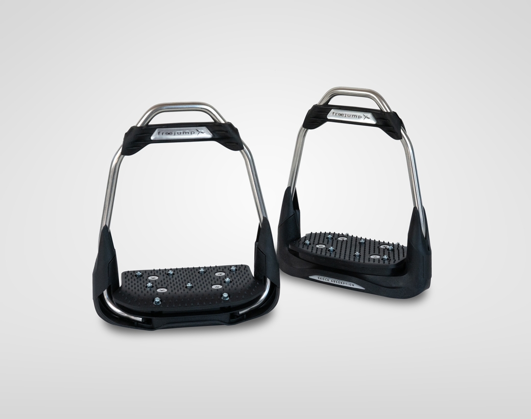 Der Steigbügel AIR'S besticht durch sein traditionelles Design mit Edelstahlrahmen. Seine technischen Merkmale, wie die Freejump-Stoßdämpfungstechnologie und die Möglichkeit, die Ösenposition und den Trittwinkel individuell einzustellen, gewährleisten außergewöhnlichen Komfort und perfekte Stabilität.