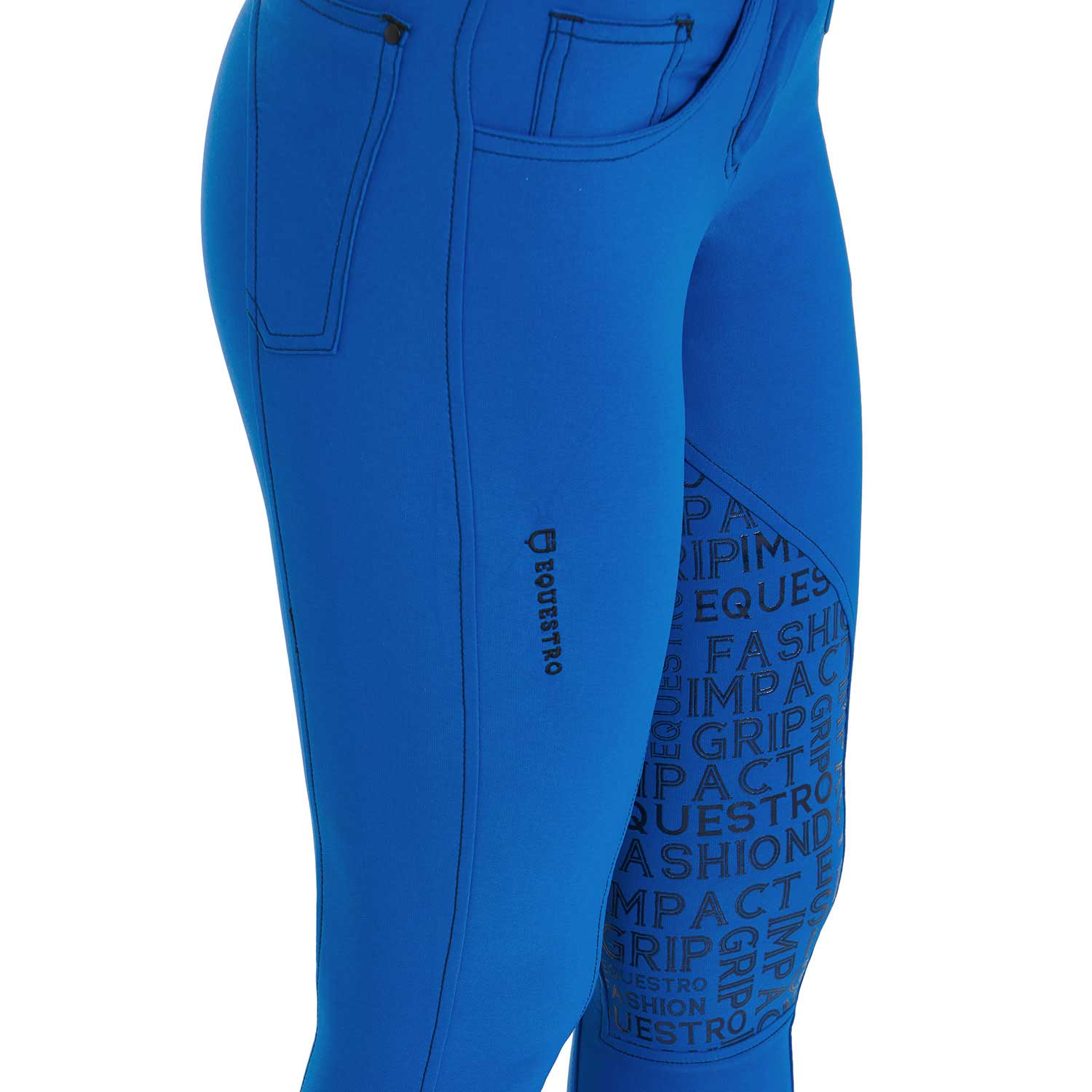 Damenhose Xeni aus technischem Material, mit Grip an den Knien und elegant gesticktem Equestro-Logo auf der rechten Seite.