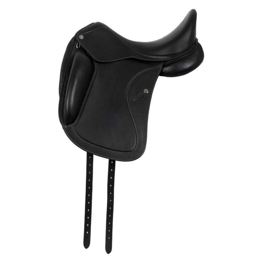 Acavallo-Dressursattel aus feinem, doppeltem Kalbsleder mit Wollkissen und Carbonbaum für Komfort, Leichtigkeit und Leistung.