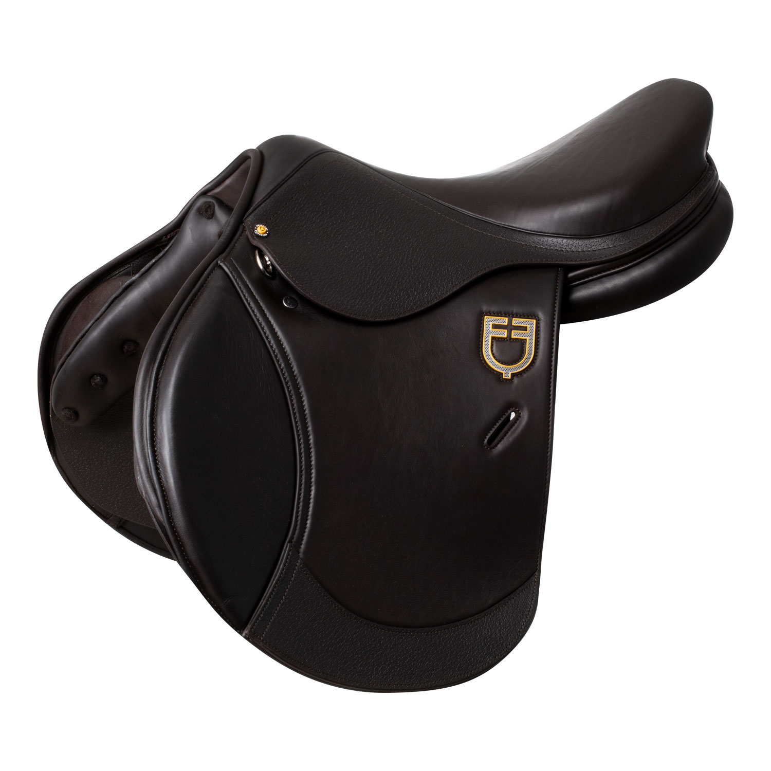 Springsattel Modell Earth aus feinem und weichem Leder, schlank, schlicht und elegant gestaltet, für hervorragenden Halt und hohe Leistung. Es verfügt über eine quadratische Kopfplatte und einen mitteltiefen Sitz. Die hinteren Polster verhindern Schmerzen und Beschwerden beim Pferd. Seine einzigartige anatomische Form verteilt den Druck gleichmäßig auf den Rücken und lässt den Widerrist völlig frei.