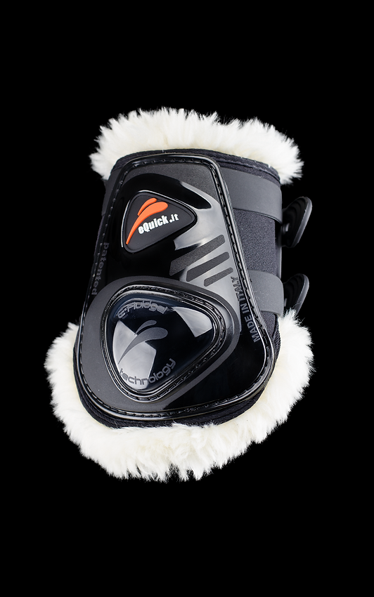 Die eShock-Stiefel mit patentiertem eFluidgel-System bestehen aus hochwertigen Materialien und sind so geformt, dass sie die Sehne umschließen und so Schutz und Komfort bieten. Die exklusive eFluidgel-Technologie reduziert den Aufprall auf die Gliedmaßen des Pferdes, während das Free Torsion System verhindert, dass das Bein beim Sprung blockiert.