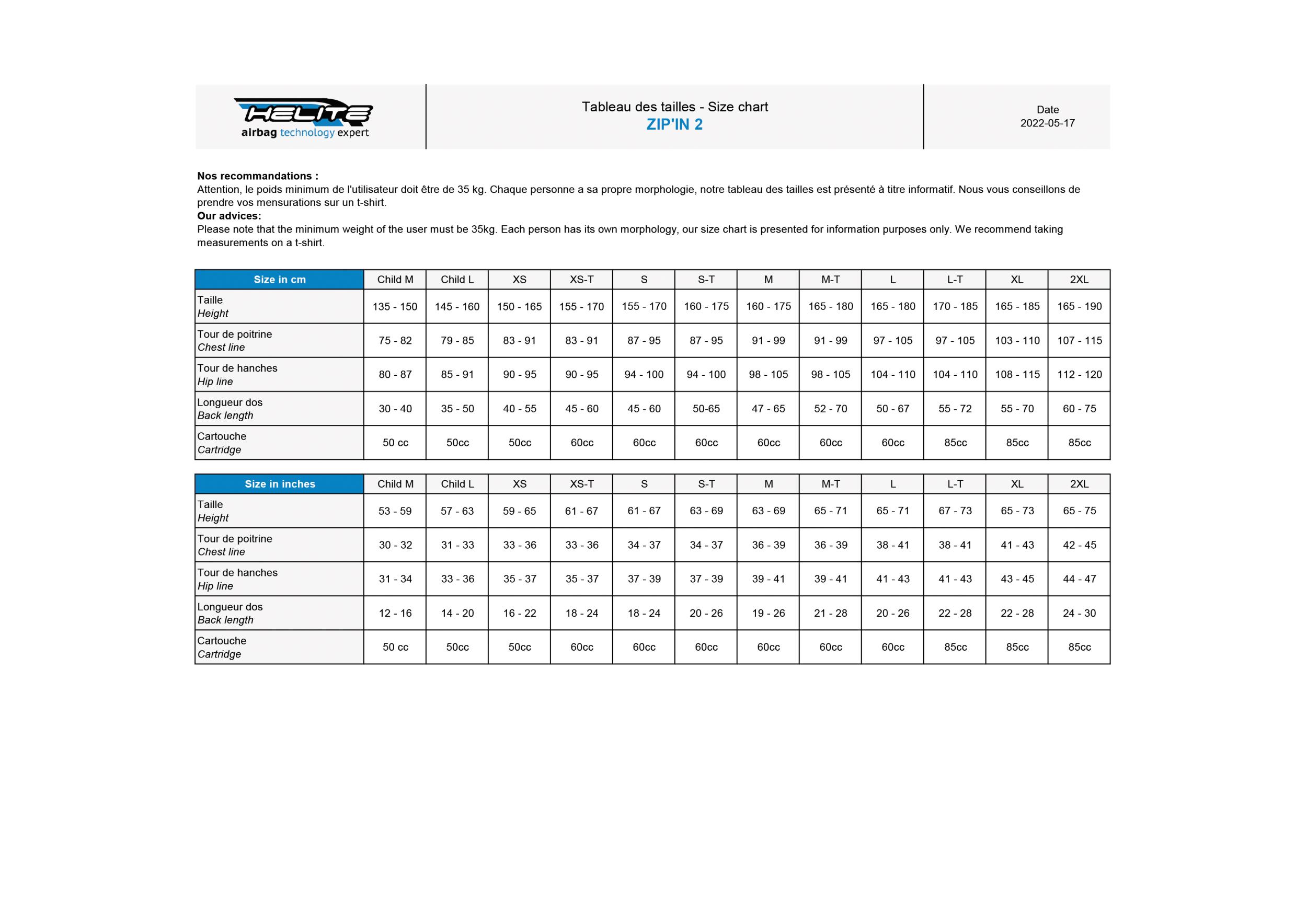 Das Helite-Airbagsystem ist mechanisch, sofort einsatzbereit und wiederverwendbar .