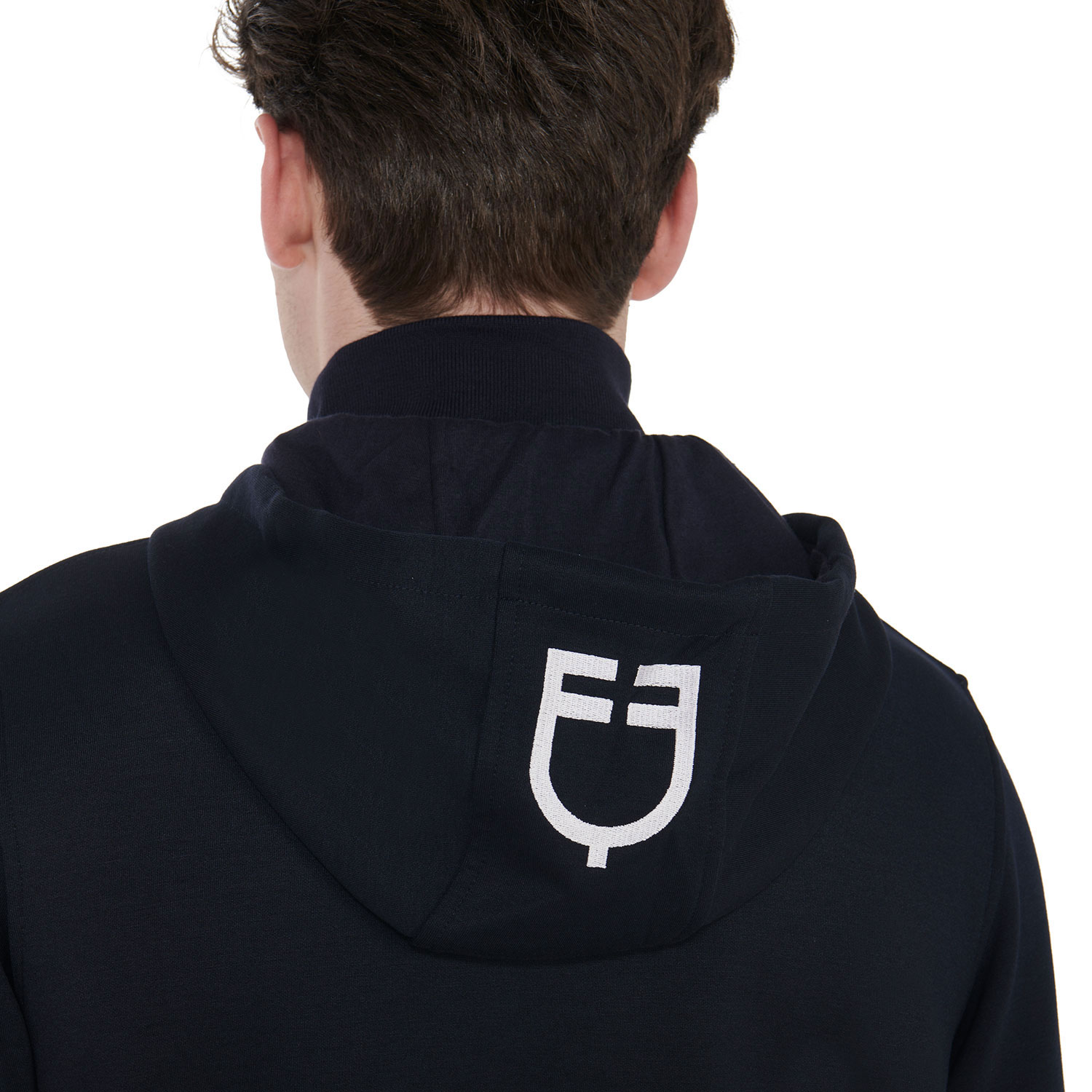 Ultraweiches Baumwoll-Sweatshirt für Herren, das völlige Bewegungsfreiheit bietet. Der vordere Reißverschluss und die Seitentaschen sorgen für zusätzliche Funktionalität, während die elastischen Bündchen und der Saum die Passform verbessern. Das Equestro-Logo mit aufgesticktem Schriftzug auf der linken Brust und auf der Kapuze sorgt für eine unverwechselbare Note. Perfekt für Training und Freizeit.