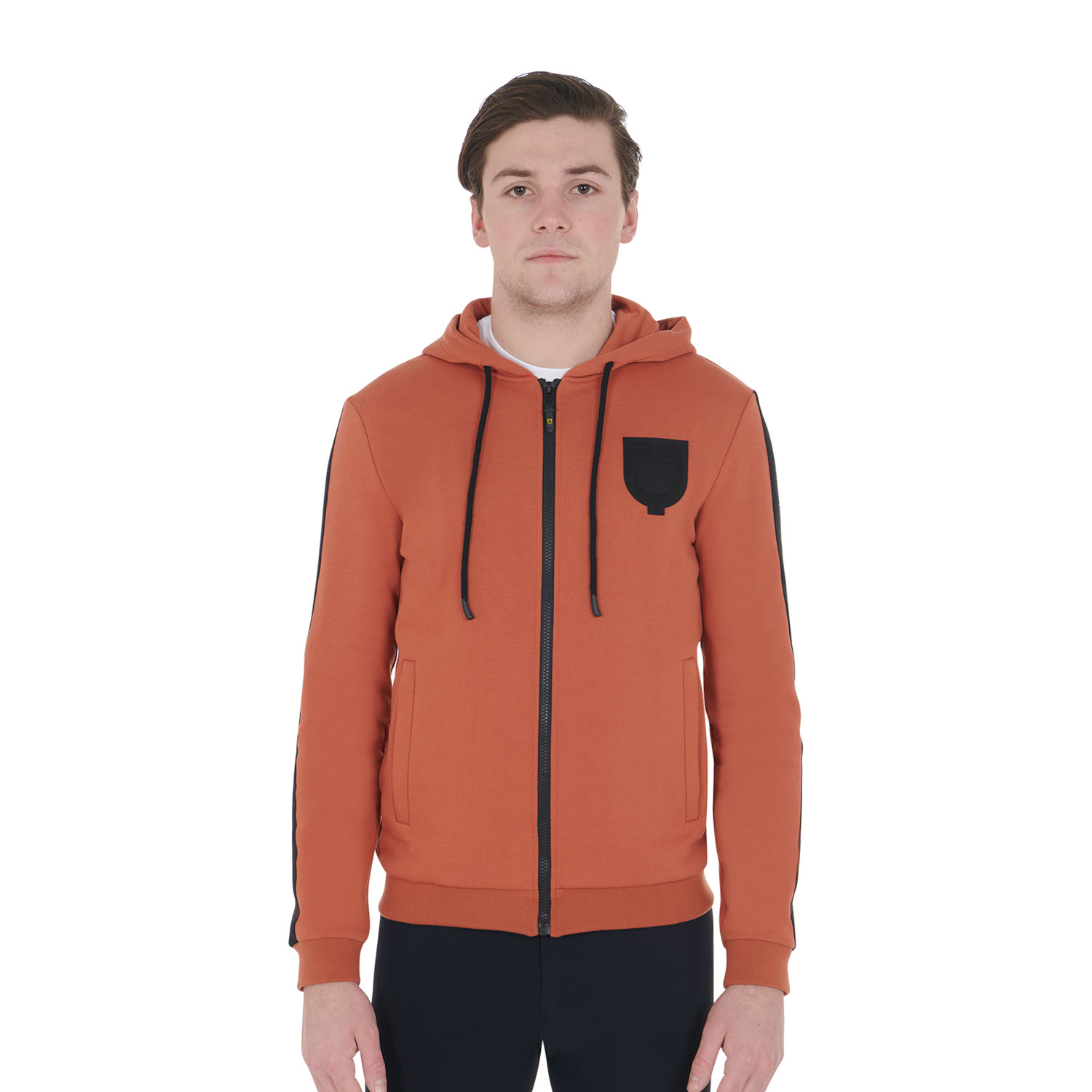 Herren-Sweatshirt mit Kapuze und Kordelzug, durchgehendem Reißverschluss vorne und Seitentaschen. Es besteht aus feinem Baumwollfleece und bietet ein Gefühl von extremer Weichheit und umhüllender Wärme, ideal für die kältesten Tage.