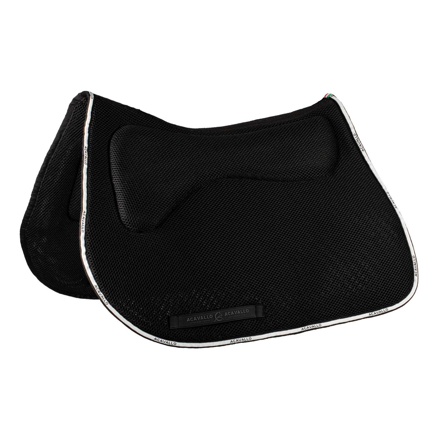 Durch die Kombination aus Memory-Schaum und 3D-Spacer-Gewebe absorbiert die Schabracke Stöße und dämpft Vibrationen und bietet so einen zusätzlichen Schutz für den Rücken des Pferdes während des Sprungs.