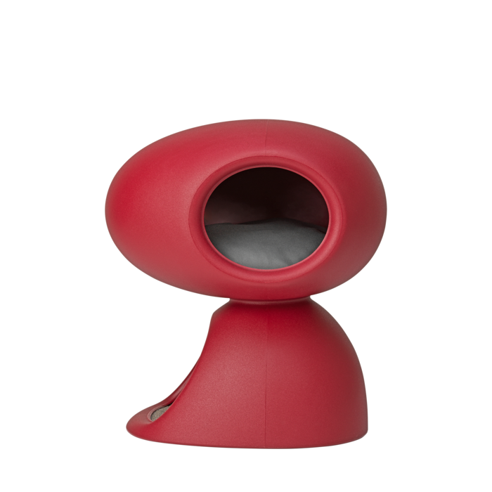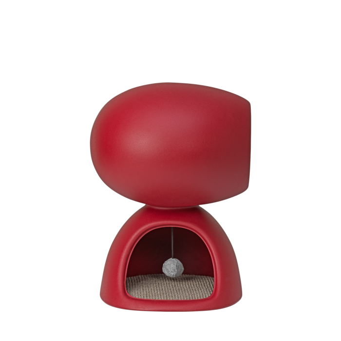 Cat Cave, entworfen von Stefano Giovannoni in Zusammenarbeit zwischen Qeeboo und United Pets, ist ein Haus-Höhlen-Schutz für Katzen. Sie besteht aus zwei übereinanderliegenden Steinen: Die untere Höhle hat eine Kratzmatte auf dem Boden und einen weichen Ball, der von der Decke hängt. Das obere zeichnet sich durch ein Bullauge aus, das es der Katze ermöglicht, einzutreten, sich zu schützen und die Außenwelt zu untersuchen, um den nächsten häuslichen Angriff zu planen