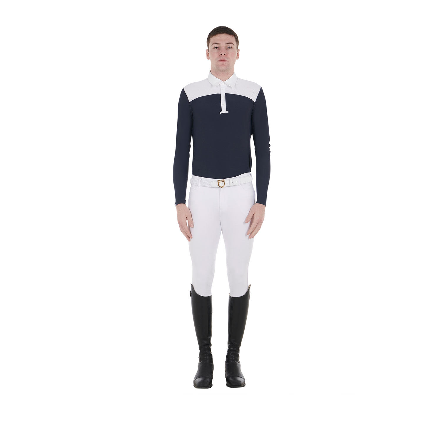 Herren-Langarm-Poloshirt für Wettkämpfe. Es besteht aus technischem Stoff und garantiert eine hervorragende Passform und hervorragende Atmungsaktivität.