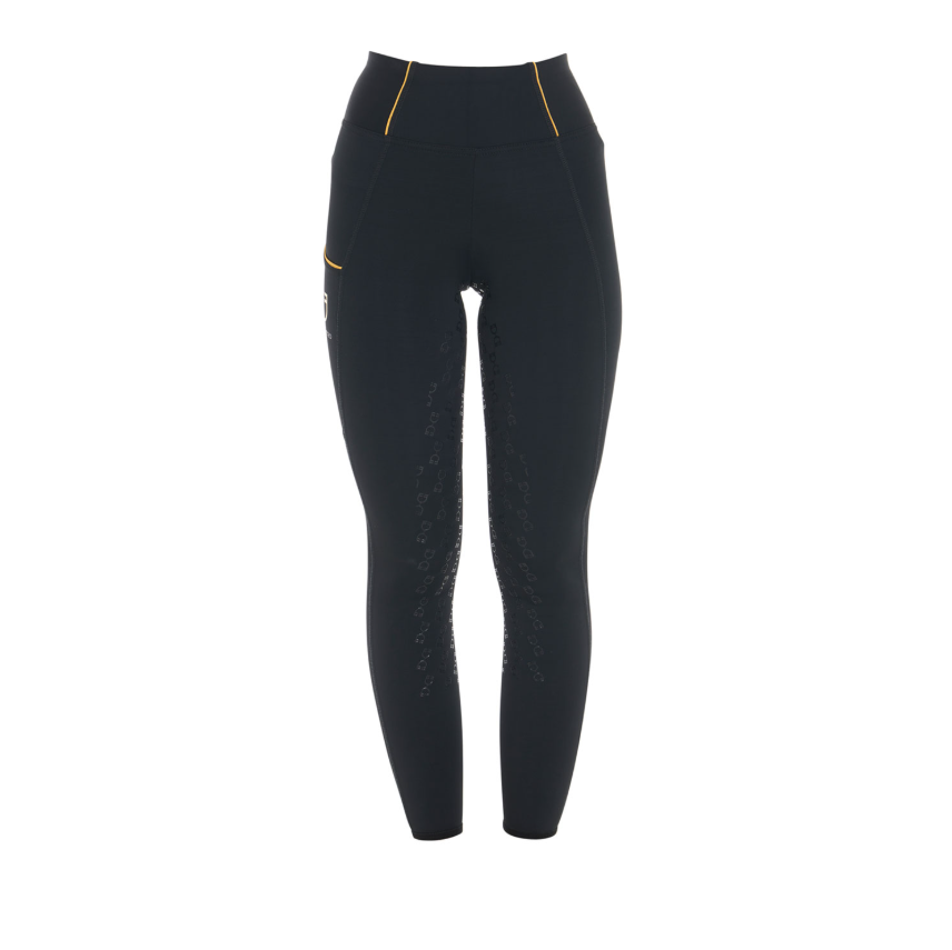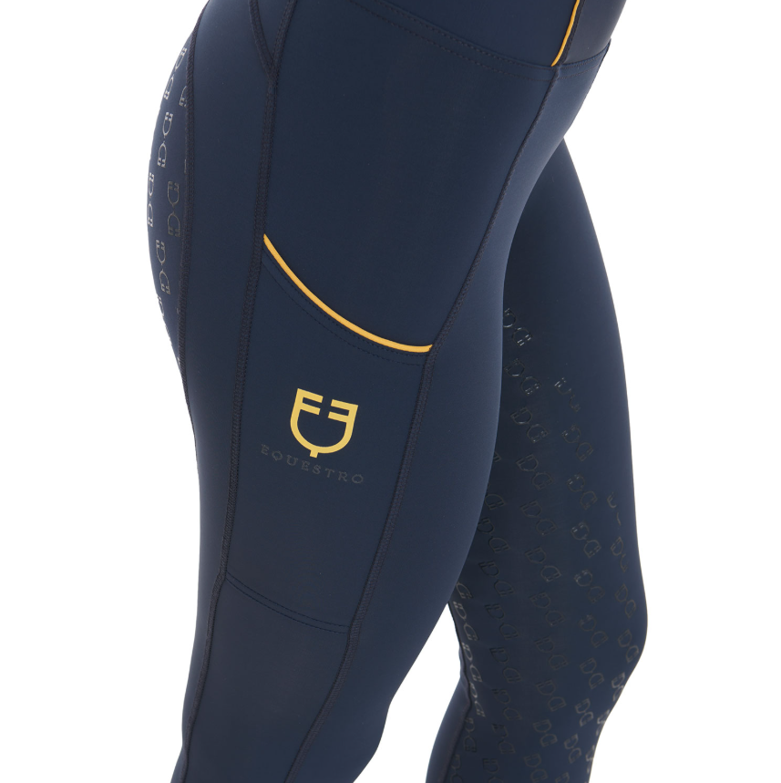 Damen-Leggings im Slim Fit mit Vollgrip . Das atmungsaktive Material ist teilweise mit dem Silikon-Logo-Grip bedeckt, der insbesondere an der Rückseite und Innenseite des Knies vorhanden ist, um die Position im Sattel zu erleichtern und die Stabilität zu erhöhen.