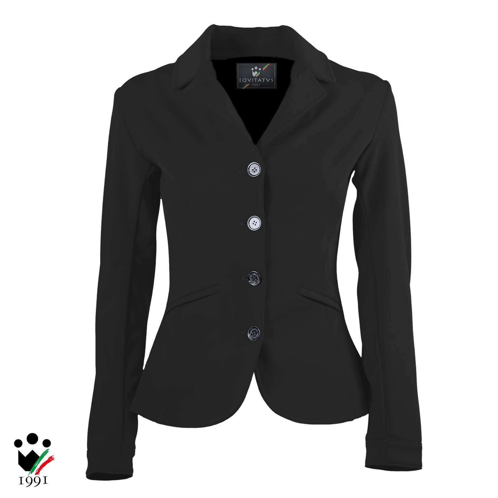 Mit geformter Taille, zwei Vordertaschen und einem doppelten Rückenschlitz. Der Verschluss ist mit vier Knöpfen ausgestattet.