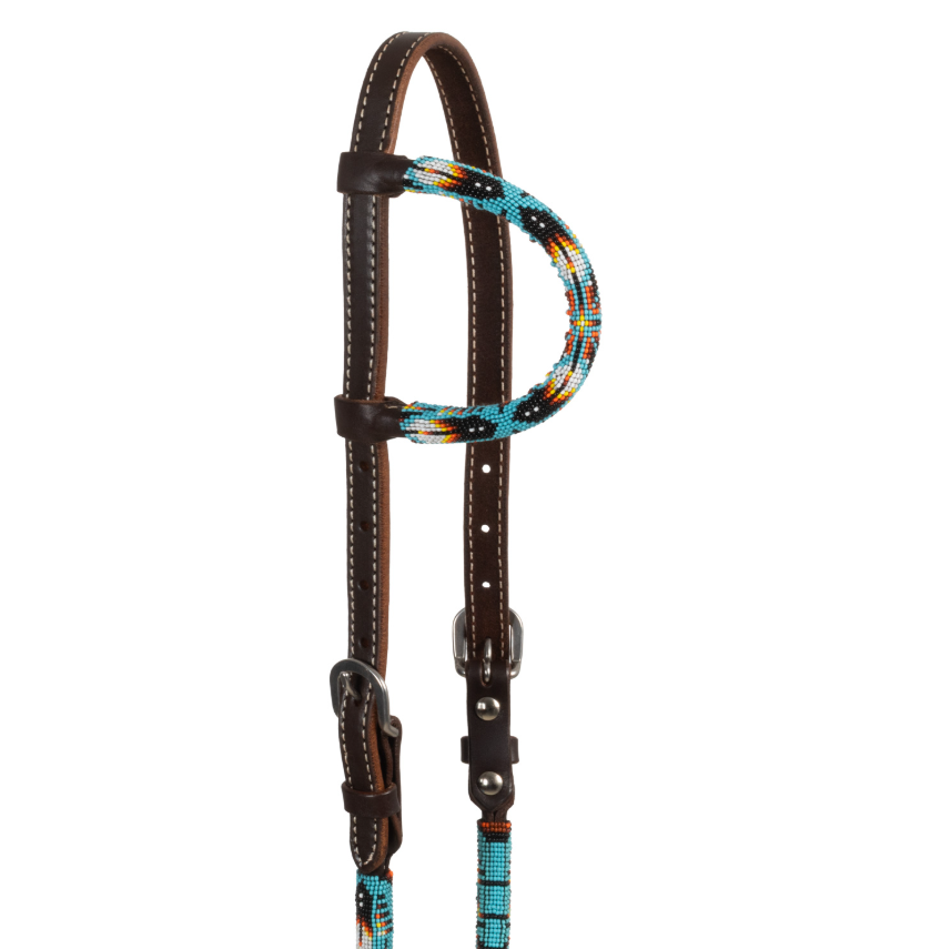Navajo Sky Westernzaumzeug aus geöltem Leder mit einem Ohr, verziert mit eleganten Perlen im Navajo-Stil.
