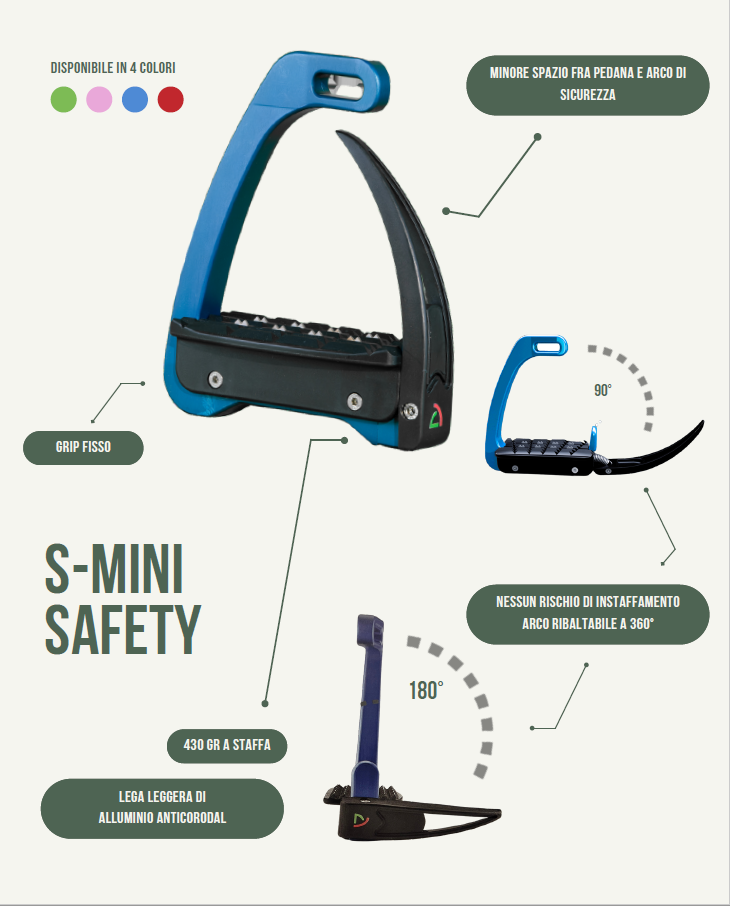 Der S-Mini wurde von Safe Riding entwickelt, um Kinder von ihren ersten Schritten in die Welt des Reitens bis zum Alter von 14 Jahren zu begleiten und ihnen Sicherheit und Komfort zu garantieren.