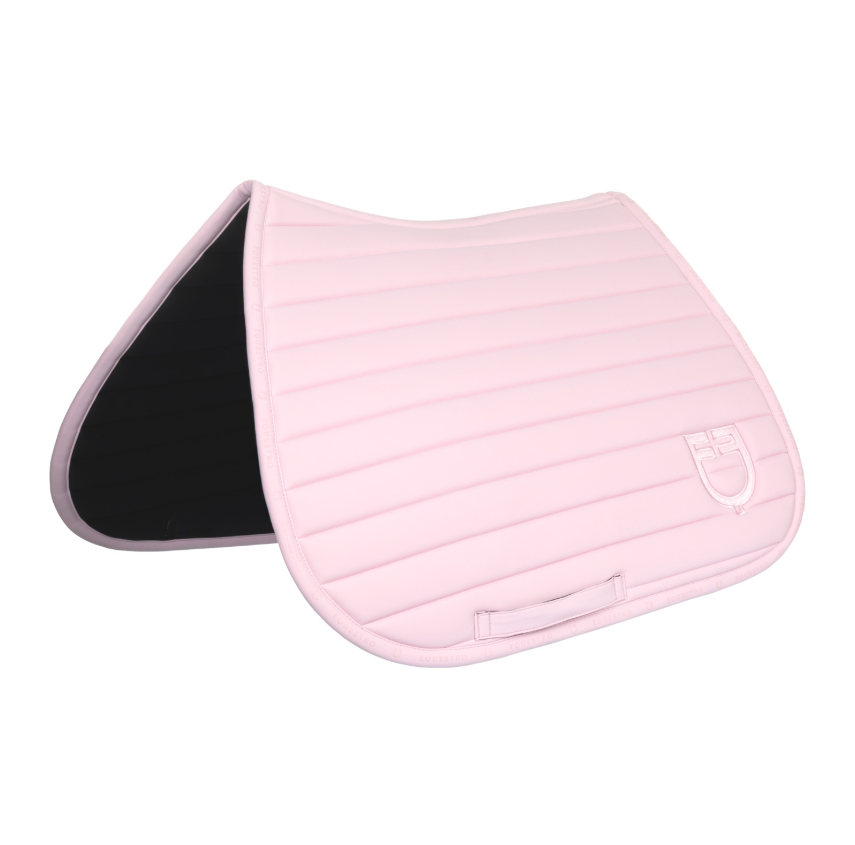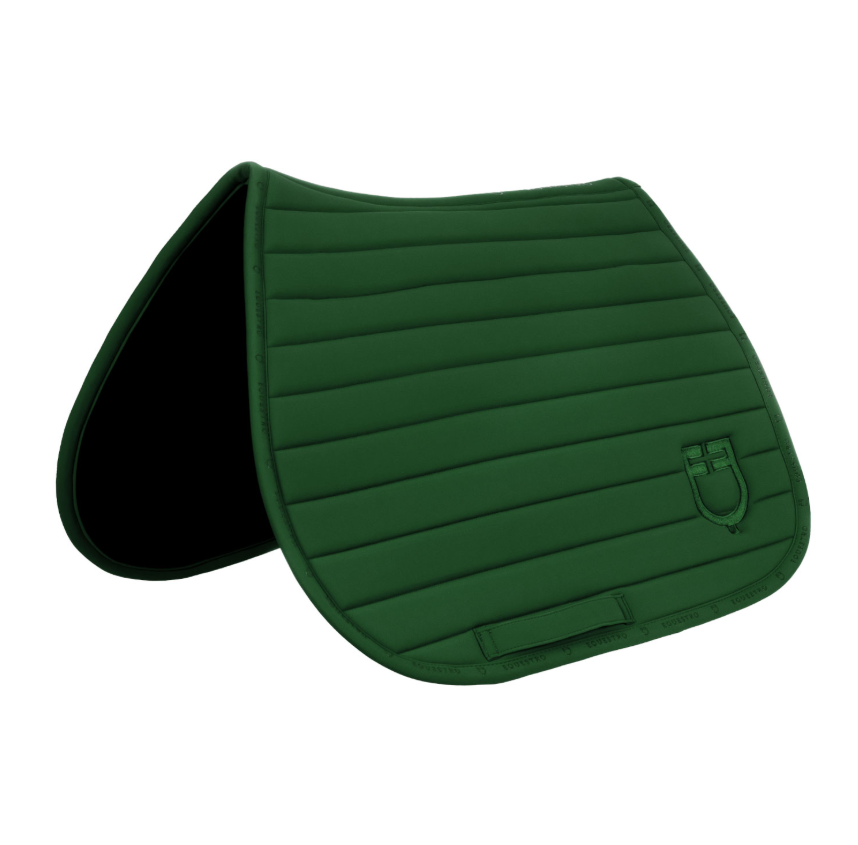 Springschabracke aus leichtem und atmungsaktivem technischem Gewebe mit horizontaler Bandsteppung und Silikonlogo an den Rändern.