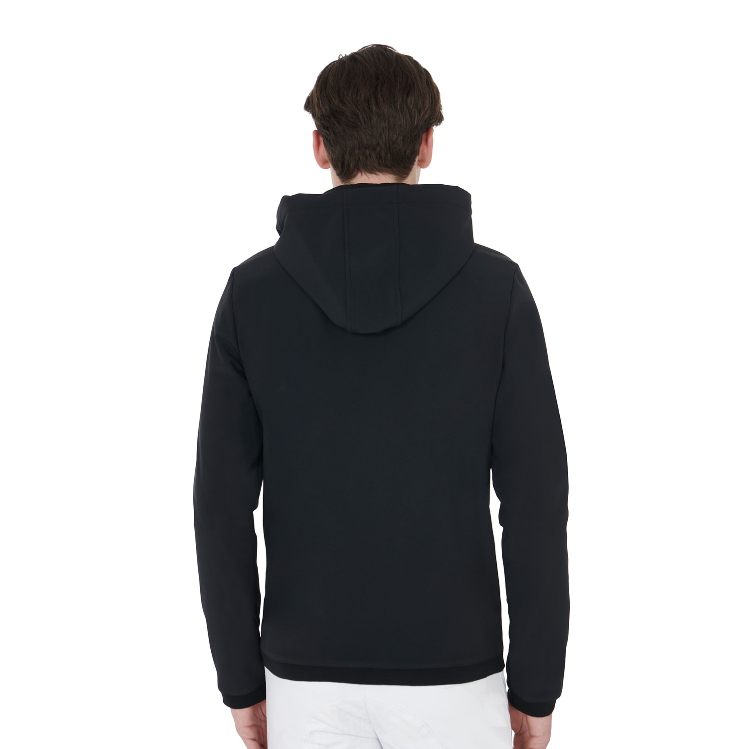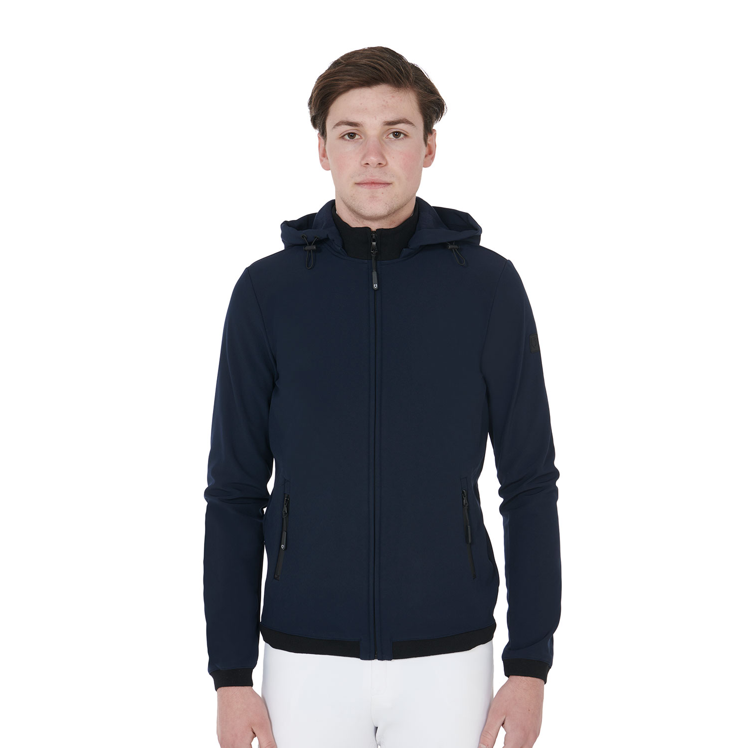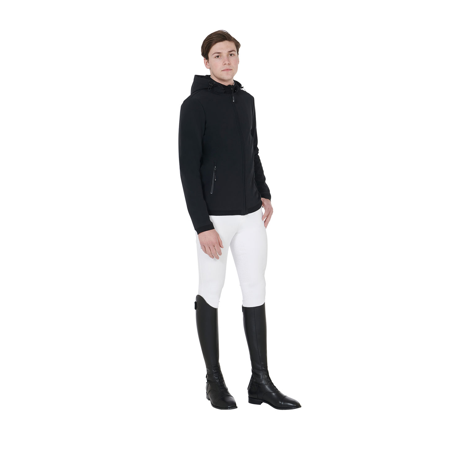Slim-Fit-Herrenjacke aus technischem Softshell-Gewebe, das atmungsaktiv und widerstandsfähig ist und eine einwandfreie Passform, optimalen Komfort, Bewegungsfreiheit und Schutz vor den Elementen gewährleistet. Das antibakterielle Gewebe erleichtert die Wartung. Mit abnehmbarer Kapuze, weichem Innenfutter aus Fleece, winddichtem Reißverschluss sowie elastischem Bund und Bündchen. Mit einem Equestro-Logo-Patch auf dem linken Ärmel ist es ideal für Training und Freizeit.