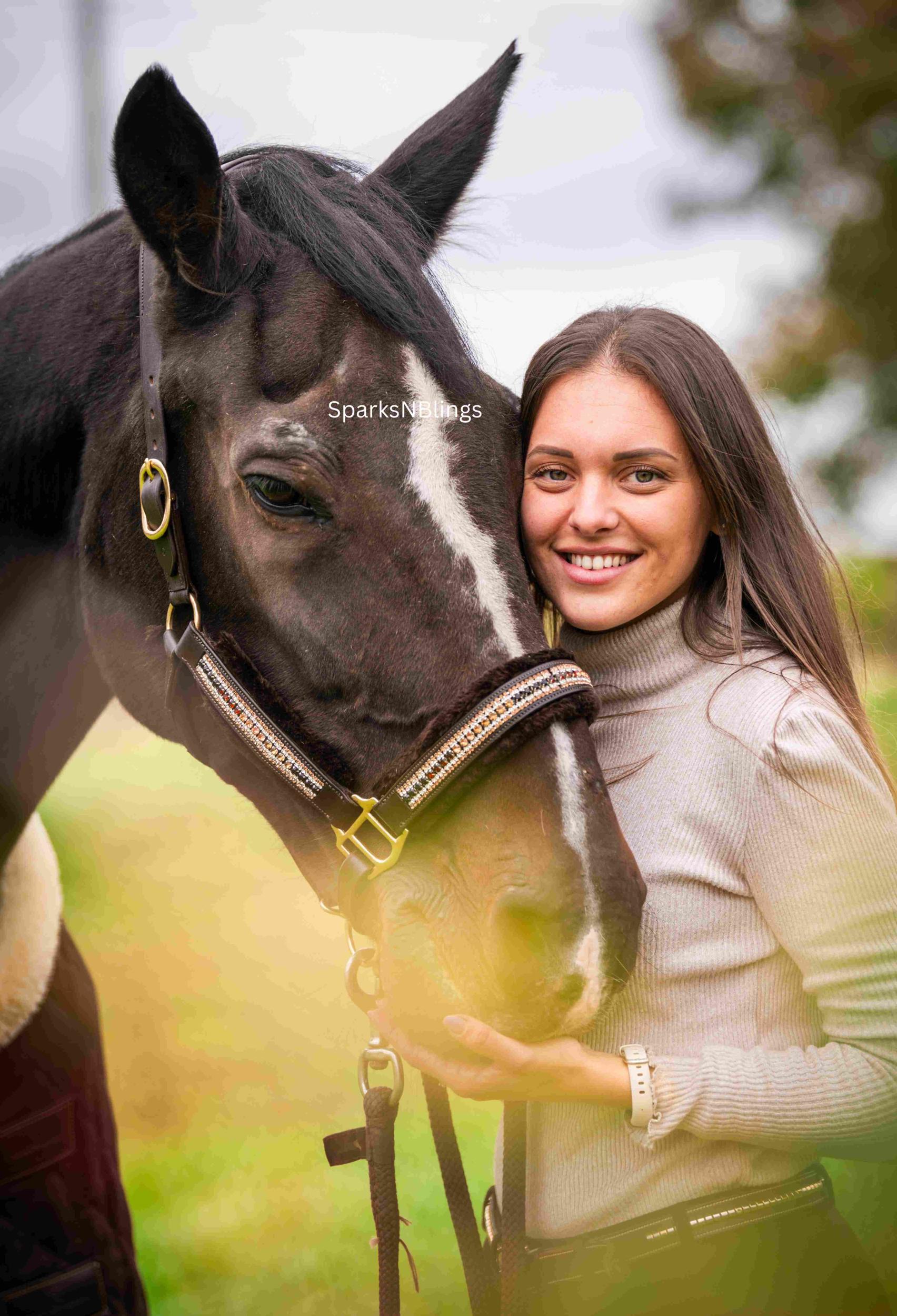 Elegantes, fein gearbeitetes Sparks N Blings Lederhalfter. Die mit Gel gepolsterten Seiten sorgen für eine perfekte Passform und die Verzierung mit braun getönten Swarovski-Kristallen sorgt für unvergleichliche Eleganz.