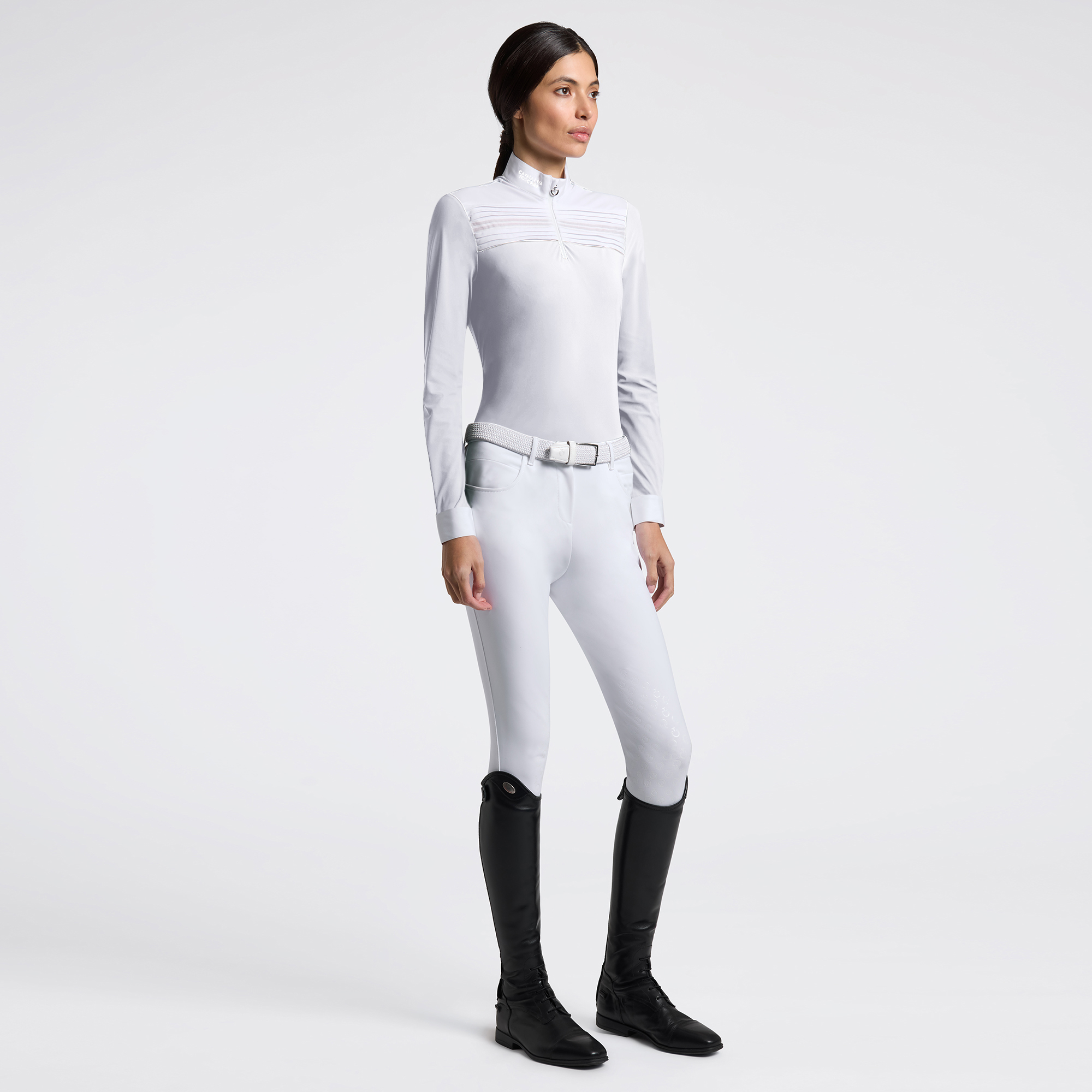 The CT L/S Pleated Insert Competition Shirt from Cavalleria Toscana is the perfect competition shirt for riders who want to stand out with class and comfort. Made from a technical two-way stretch fabric , it combines breathability, elasticity, and quick drying to ensure maximum freedom of movement during competition.