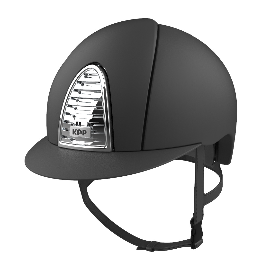The outer shell, made of polycarbonate with an in-moulding system, combines lightness and resistance. The ventilation grille, with an aggressive and elegant design, is available with both contrasting and tone-on-tone finishes. The KEP AIR CONTROL SYSTEM is enriched with additional ventilation slots on the back, to ensure greater breathability and better control of internal temperature. The hand-stitched genuine leather strap maintains the five attachment points for a more stable fit. The new padding, even more comfortable and breathable, is made of soft fabric from eco-friendly raw materials.