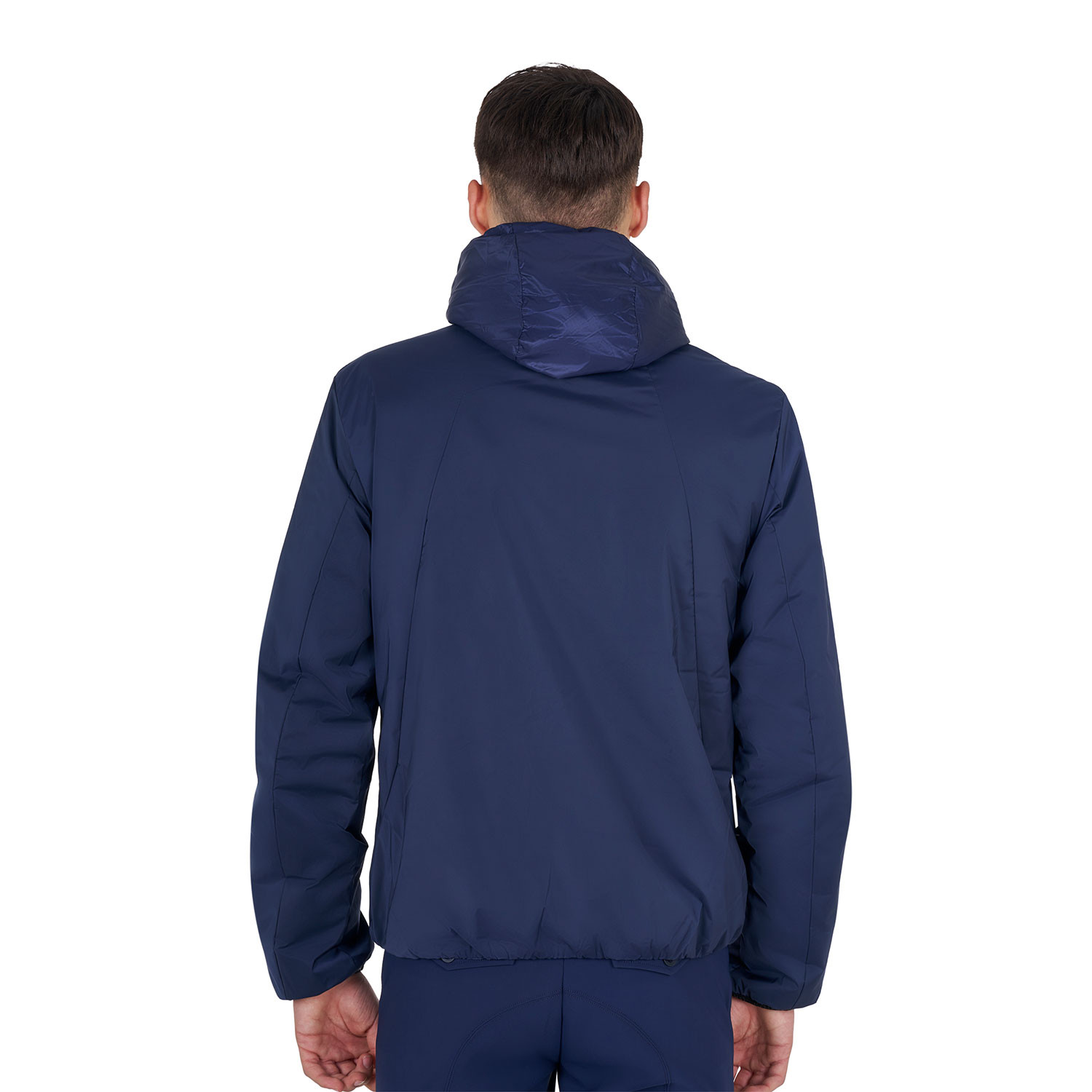 The garment is completed by the full-length front zip fastening, the logoed elasticated trims on the edges for better insulation and the hood.