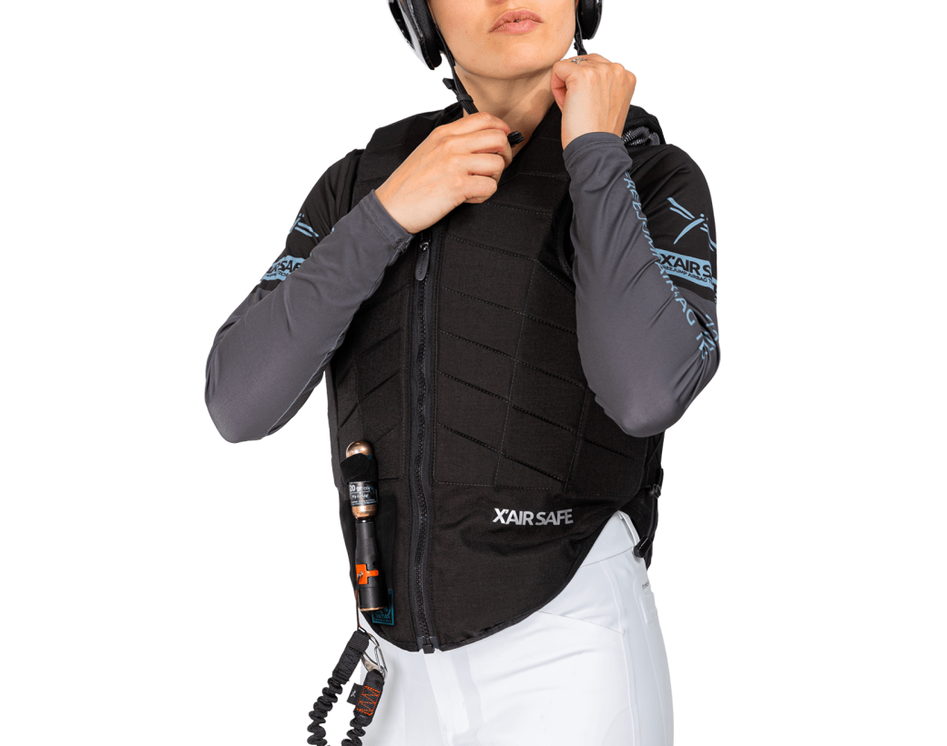 The X'AIR SAFE is available in children's sizes S, M and L, and adult sizes XXS to XL, with two options for sizes XS to L: regular or long (indicated by a "T" in the size) to offer a perfect fit, even for tall people. For example, the long version of size XS is called XST. From size XXS upwards, X'AIR SAFE is suitable for people at least 1.45 m tall and weighing at least 35 kg.