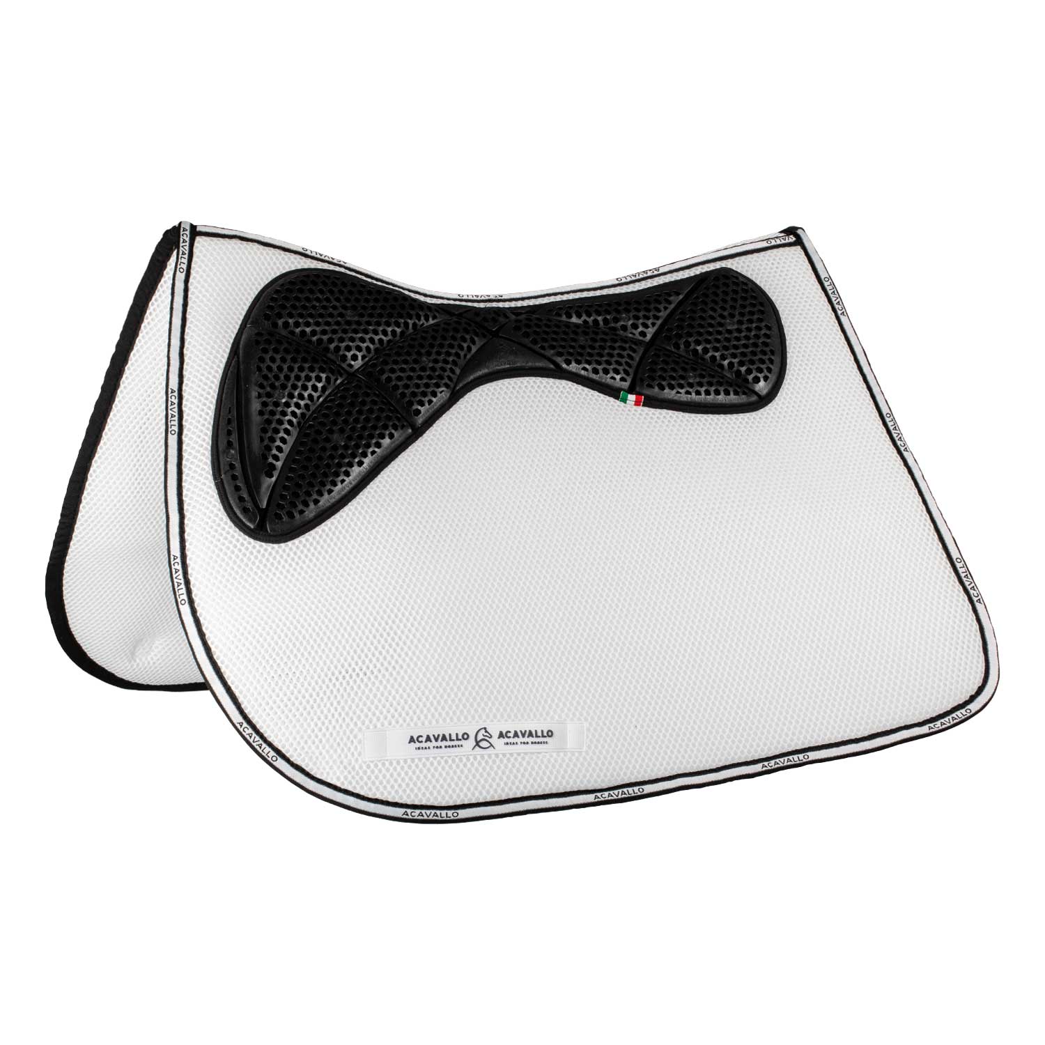 The Acavallo jumping saddle pad with classic withers, equipped with 3D spacer on the spine in memory foam and gel grip, ensures optimal comfort and exceptional performance during jumping sessions. The gel in the saddle pad offers excellent non-slip grip and superior shock-absorbing capabilities. This ensures that the saddle remains securely in place without unwanted movement in any direction: forwards, backwards and sideways. Furthermore, the gel adapts to slight irregularities in the horse's back, making it suitable even for slightly more rounded backs.