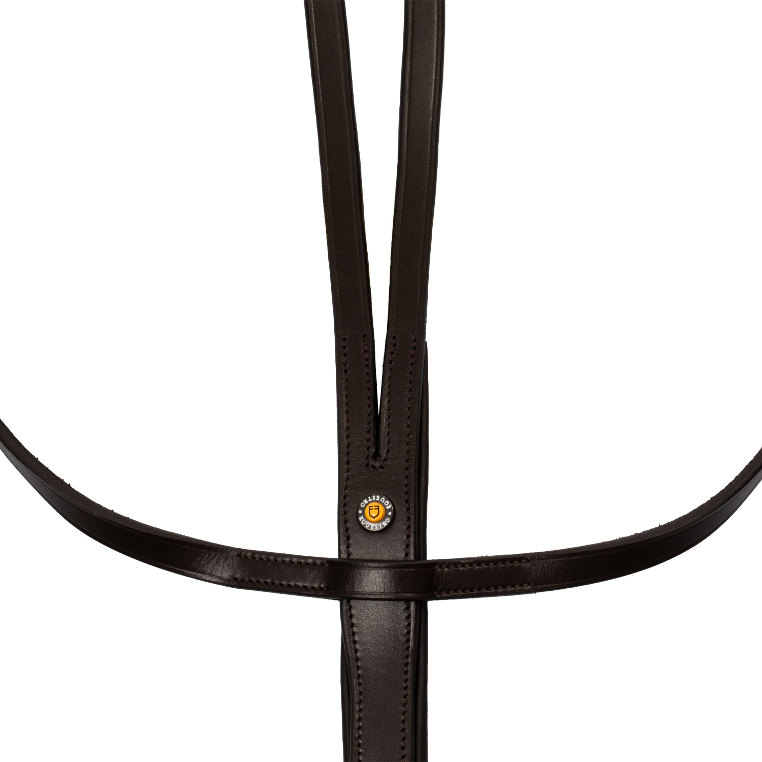 The leather martingale with silver stitching is designed to limit the upward movement of the horse's head. It works by acting directly on the mouth through the reins that pass through the ring located at the end of the fork. It is essential to use the reins with the olives, otherwise the martingale could move forward and get caught in the bit ring, potentially blocking the horse's head and increasing the risk of falling. Each strap and buckle is adjustable to ensure the breastplate fits any type of horse perfectly.
