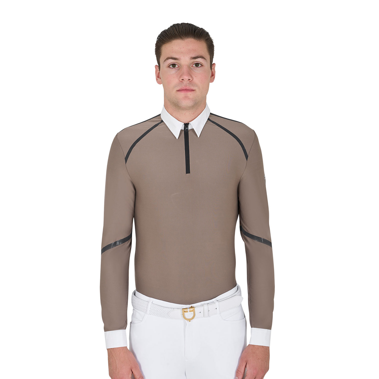 The polo shirt features a practical zip closure with windproof system, cuffs with two button closure and you can't ignore the Equestro logo positioned on the left shoulder.