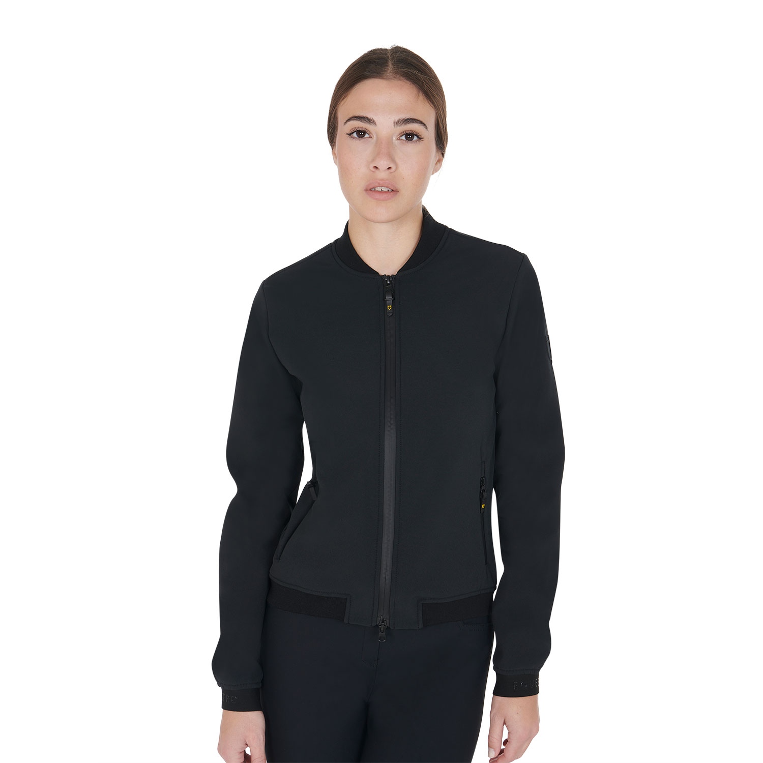 Women's bomber-style sports jacket made of technical fabric, equipped with a windproof front zip closure to ensure maximum protection against low temperatures.