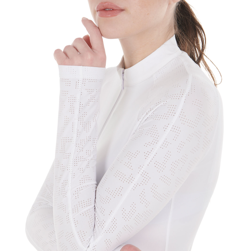 Women's slim fit competition polo, long sleeve. Winter technical fabric for comfort and performance with style.