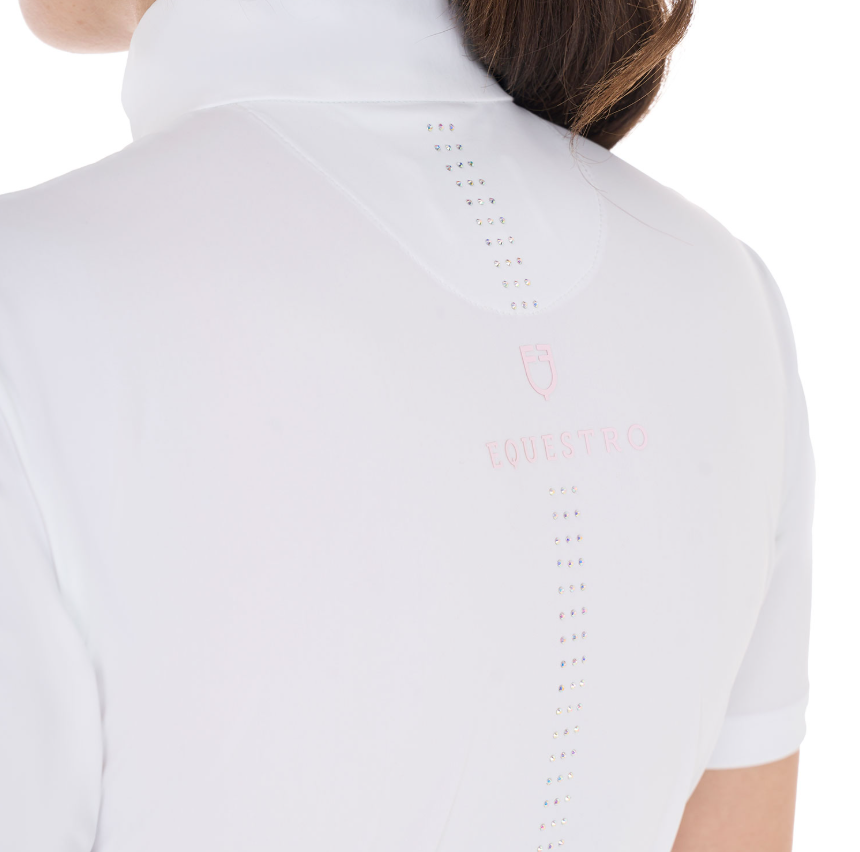 Women's slim fit polo in technical fabric, embellished with ruffles and rhinestones along the zip. Elegant and high-performance, it is designed to offer comfort and style in every competition.