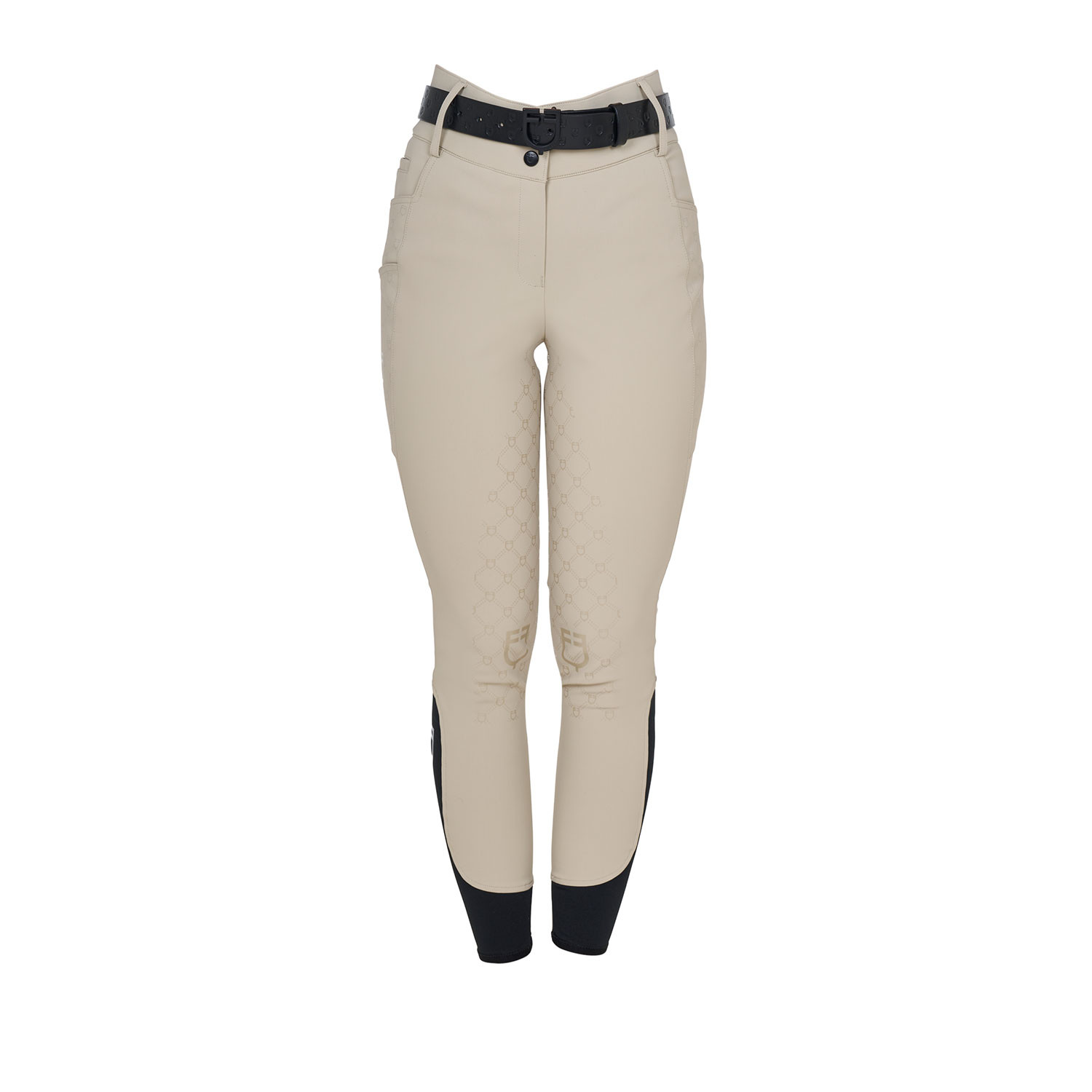 The design is enhanced by a tone-on-tone Equestro monogram motif along the thigh, a subtle and refined detail that lends a contemporary aesthetic. A convenient, practical side pocket with a logo on the right thigh completes the piece, along with the elastane insert at the ankle for an easy fit and enhanced breathability.