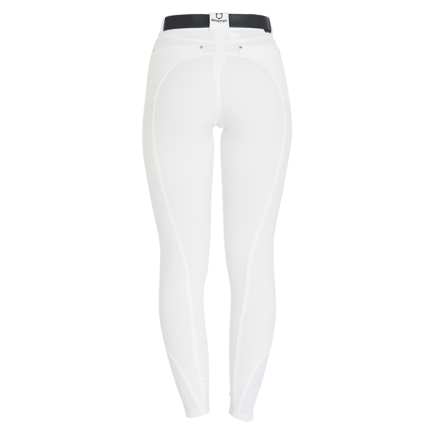 Clio style women's trousers made of technological fabric with a grip surface at the knee and embroidered detail of the Equestro brand on the right side.
