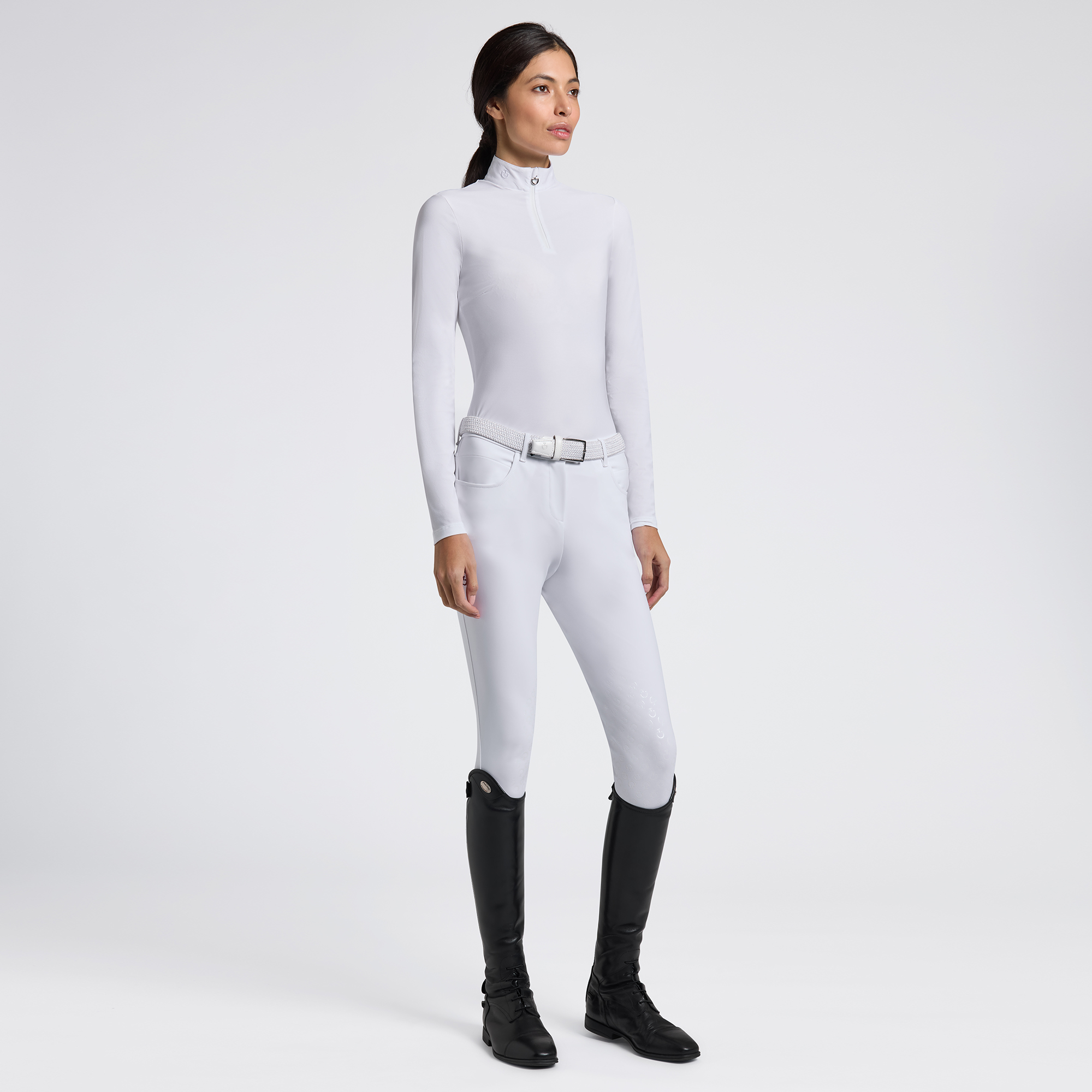 El inserto de jacquard aporta un toque refinado y personalizado al diseño, manteniendo el estilo distintivo de la marca. El cuello blanco con cierre invisible lo hace perfecto bajo una chaqueta de competición, mientras que el tejido de alto rendimiento garantiza un ajuste perfecto incluso durante la competición.