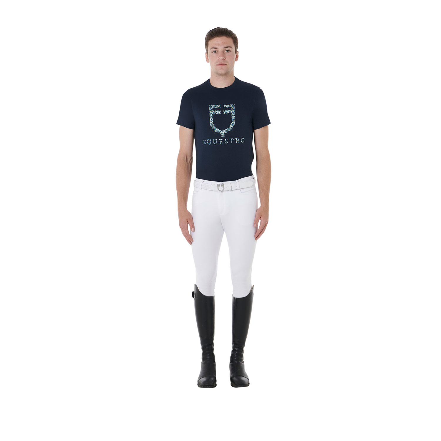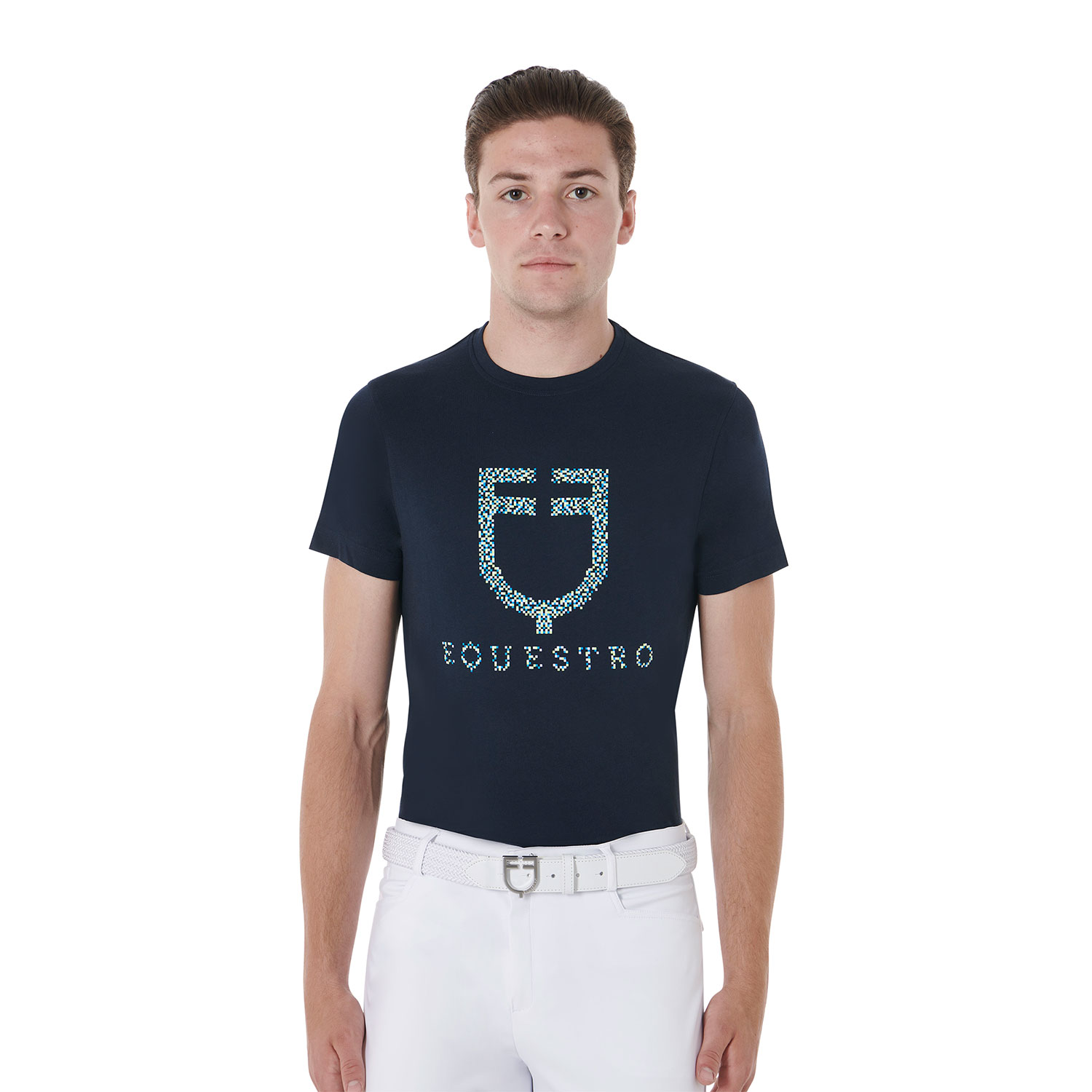 Esta camiseta para hombre está confeccionada en suave algodón y presenta mangas cortas. El tejido de alta calidad garantiza una comodidad extraordinaria. Lo que distingue a esta camiseta es el estampado frontal del icónico logo de Equestro, confeccionado con un patrón de puntos, en tonos de azul, celeste y verde. La mezcla de colores y diseño encarna la energía y vitalidad del mundo ecuestre, ideal para quienes quieren expresar su pasión a través de un estilo único.