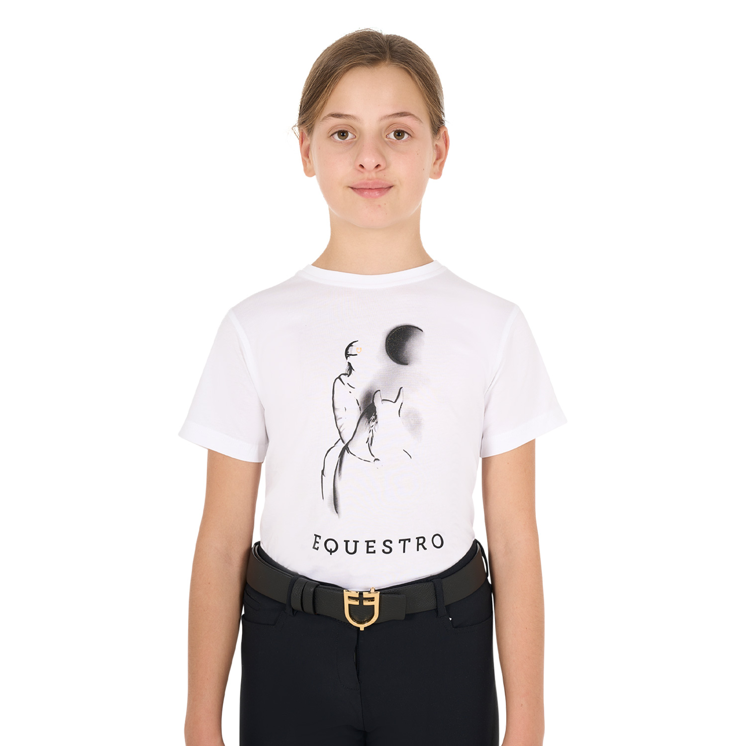 El corte entallado ha sido cuidadosamente diseñado para adaptarse delicadamente a la silueta femenina, creando un look increíblemente elegante y encantador. Con un estampado en relieve de una niña a caballo, esta camiseta enfatiza la pasión por el mundo ecuestre, aportando un toque distintivo y único a la prenda.