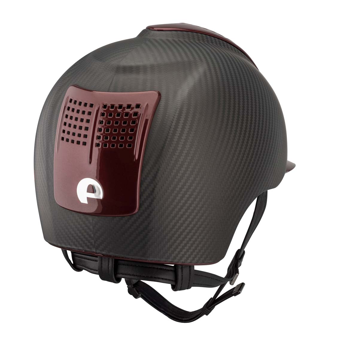 CASCO E-LIGHT CARBONO NEGRO MATE CON VISERA METALIZADA BURDEOS Y 2 INSERCIONES METALIZADAS BURDEOS