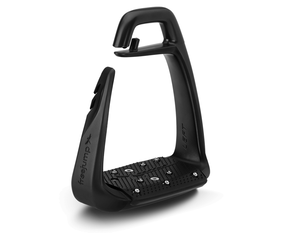 El estribo SOFT'UP CLASSIC+ incorpora la tecnología Freejump Shock Absorption gracias a su estructura de una sola pierna, que actúa como un sistema de suspensión y crea un auténtico efecto colchón de aire. Esta tecnología triplica la fuerza ejercida sobre cada estribo, reduciendo la presión sobre las articulaciones del jinete y aligerando el dorso del caballo. Este diseño avanzado, exclusivo de los estribos de una sola pierna FREEJUMP, mejora la comodidad, la durabilidad y el rendimiento general.