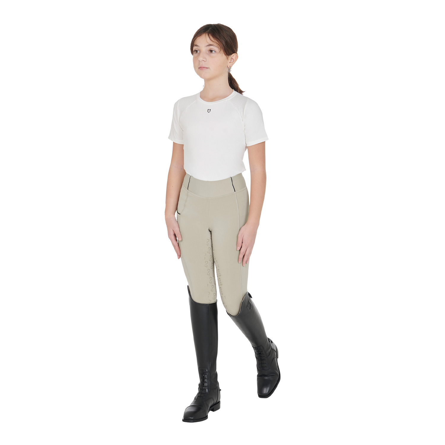 Leggings slim fit para niña con grip de silicona y logo Equestro. Confeccionada en tejido técnico y elástico.