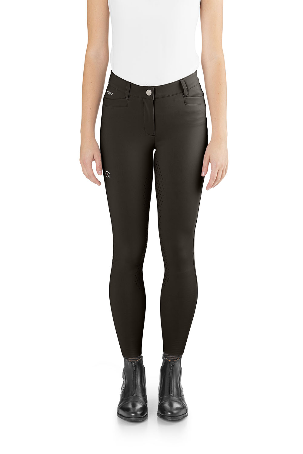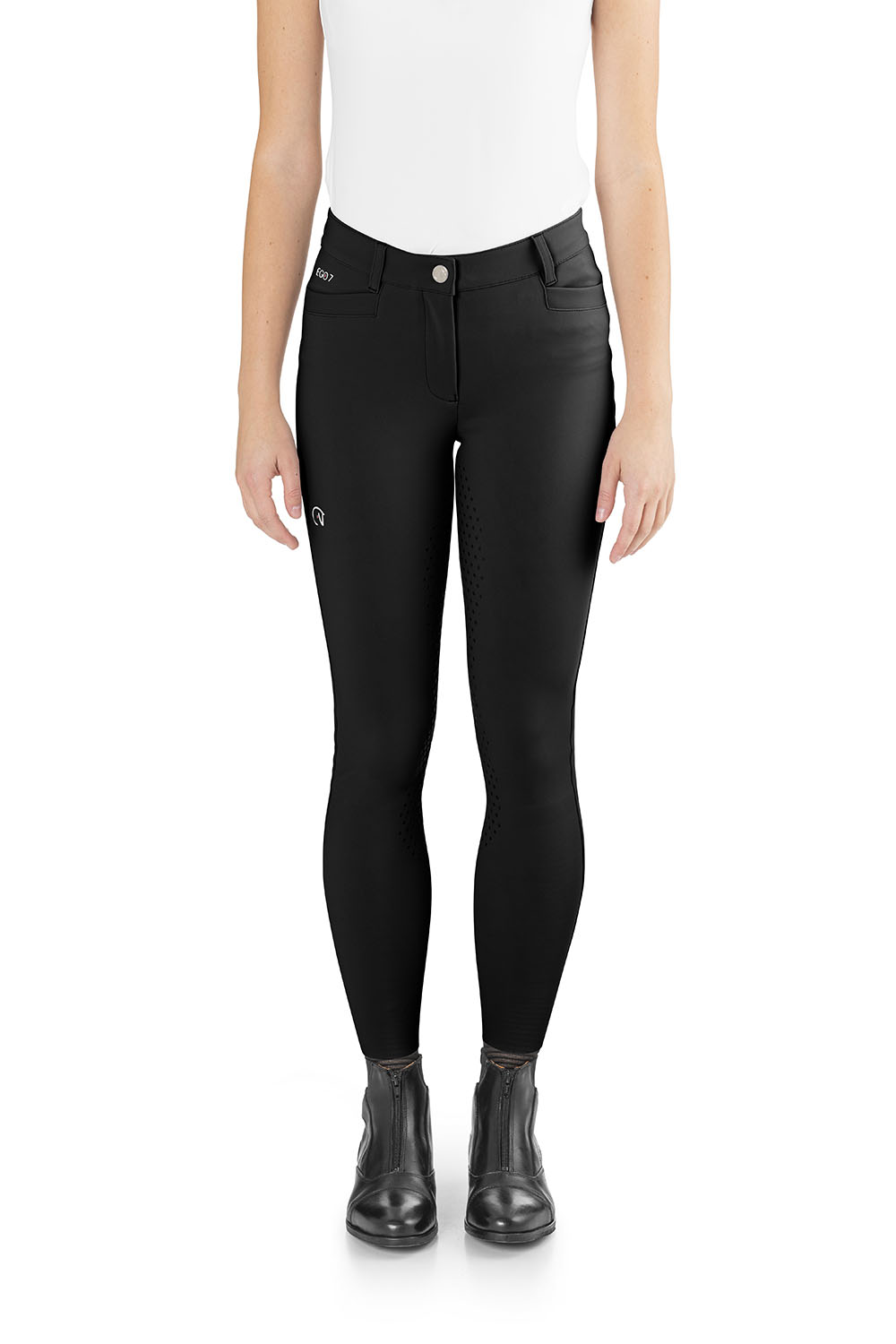 Pantalones de montar para mujer EGO7 Dressage FG con bolsillos delanteros y cremallera trasera.