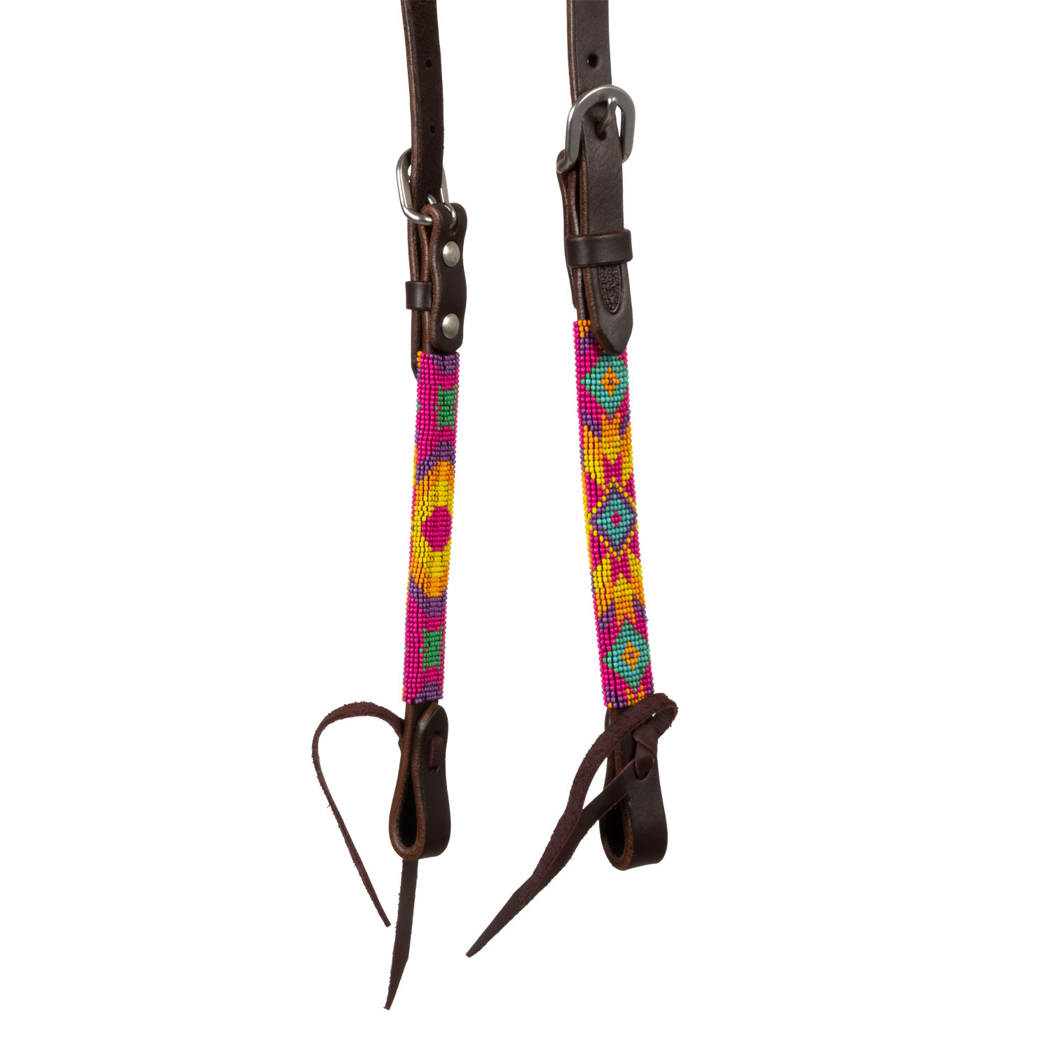 Le cuir huilé sur une oreille assure douceur et durabilité, tandis que les perles multicolores ajoutent une touche unique et lumineuse, parfaite pour les événements, les compétitions ou les promenades de style western.