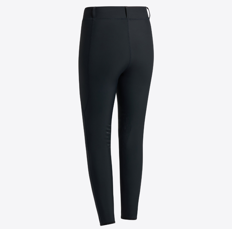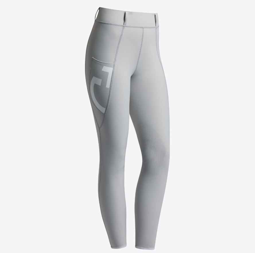 Legging de saut pour femme Cavalleria Toscana en jersey technique avec grip au genou, taille régulière, passants de ceinture et logo latéral sur la poche.