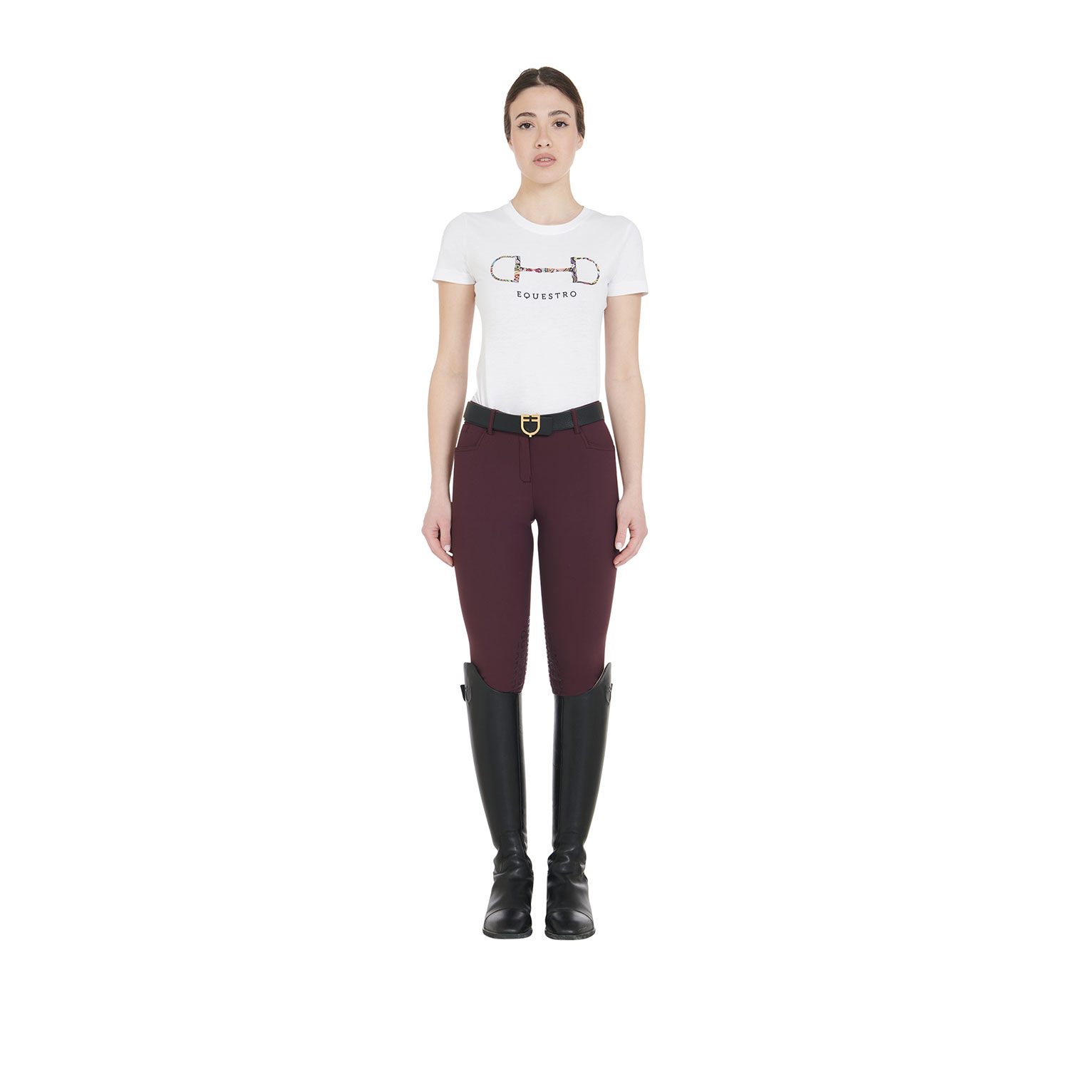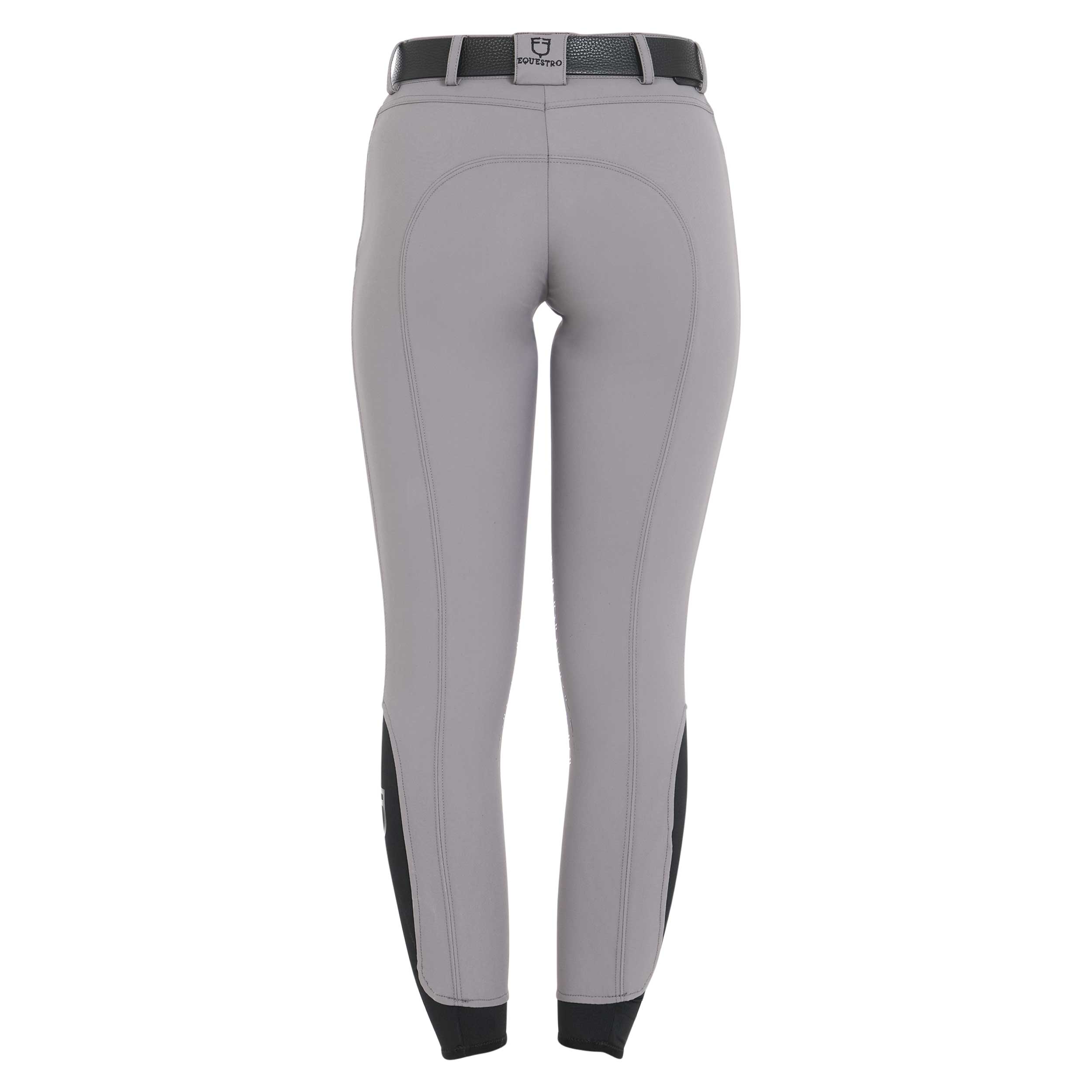 Pantalon femme moulant, style Slim Fit, réalisé en tissu technologique bi-élastique et respirant. Ils disposent d'inserts en silicone avec la marque Equestro positionnés à l'intérieur des genoux.