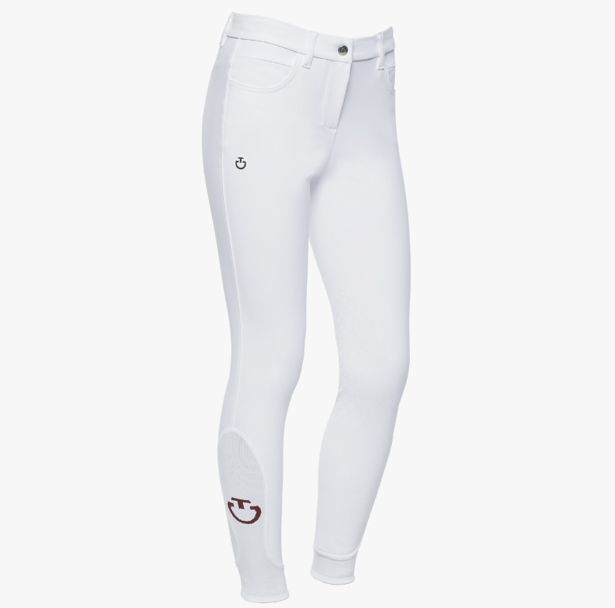 Pantalon de saut Cavalleria Toscana pour fille, en jersey technique respirant avec bandes antidérapantes aux genoux. Confort, ajustement et liberté de mouvement pour les jeunes cavalières.