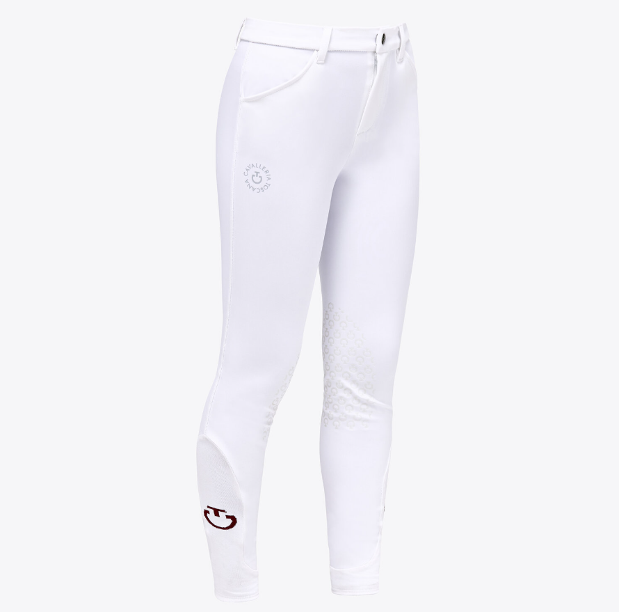 Le logo contrasté Cavalleria Toscana sur le bas complète le design avec une touche distinctive, rendant ce pantalon idéal pour les jeunes cavaliers qui veulent performance et style en toute occasion.