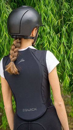 Le nouveau eQuick Back Protector est un dispositif de protection corporelle conçu pour être sûr et élégant, pour un usage quotidien et pendant les courses. Certifié Niveau 2 selon la norme EN 1621-2, il protège la colonne vertébrale des impacts. Disponible en six tailles unisexes, il présente un décolleté ovale en "V" à porter sous une veste de course, le rendant presque invisible. Constitué de trois couches de 6 mm avec trous d'aération, il s'adapte au corps pour un confort maximum. Fabriqué avec des matériaux légers, élastiques et respirants, il offre sécurité et look élégant.