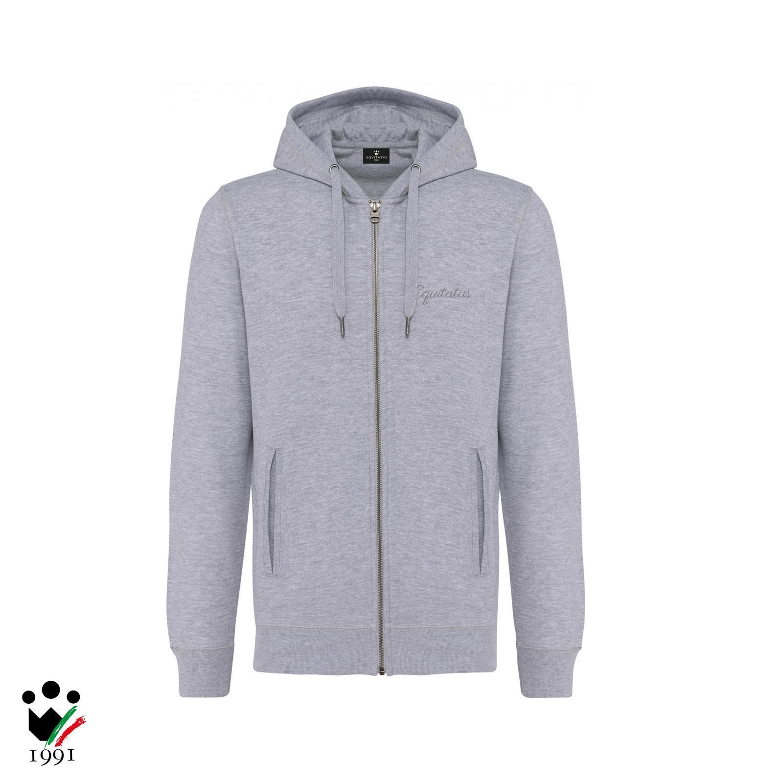 Fermeture entièrement zippée, deux poches avant et capuche