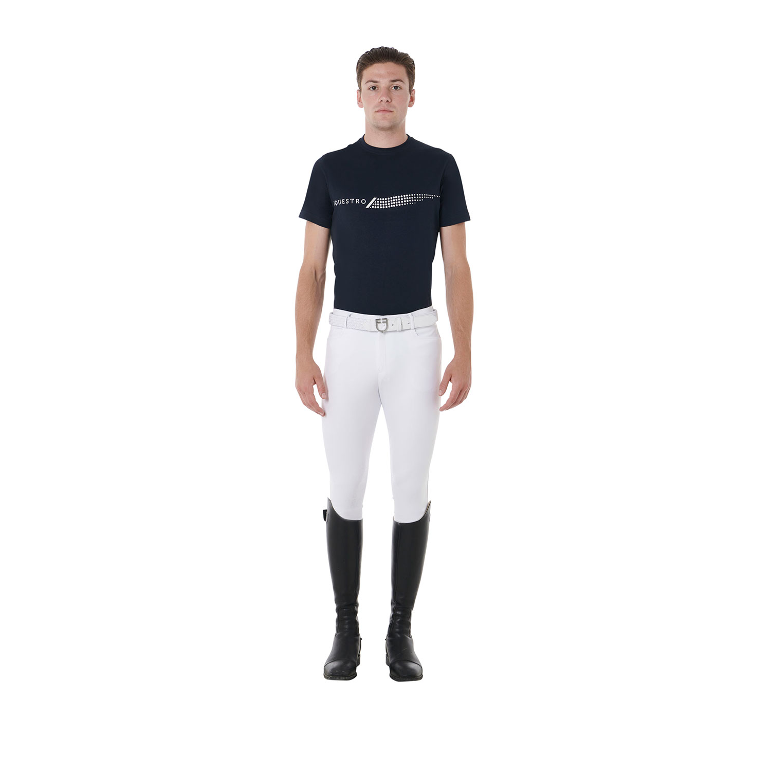 Un T-shirt pour homme coupe slim, en coton doux, idéal pour un usage quotidien avec le style équestre caractéristique. Le tissu de haute qualité assure un confort supérieur, facilitant l'ajustement, la respirabilité et la liberté de mouvement. Avec des décorations contrastées, il présente un imprimé Equestro distinctif sur la poitrine.