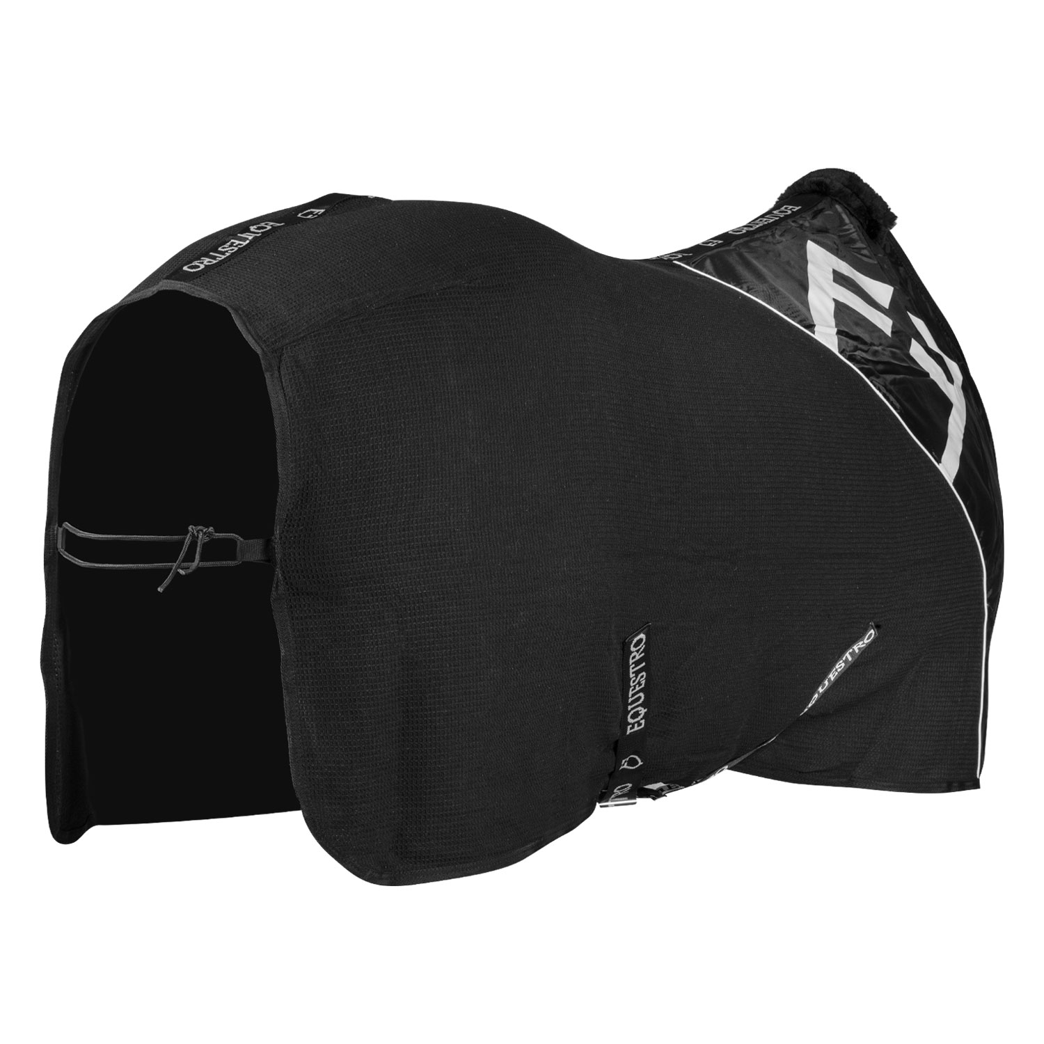 La nouvelle couverture de stalle, réalisée en tissu gaufré doux et en polyester décorée du logo Equestro contrasté, représente une solution innovante pour le confort de votre cheval. Grâce au tissu avancé utilisé, cette couverture assure une régulation thermique optimale et une dispersion efficace de l'humidité et de la sueur, gardant le pelage du cheval au sec et garantissant un grand confort.