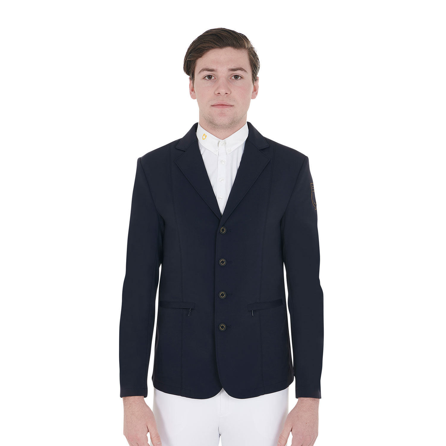 Cette veste de compétition pour homme est confectionnée dans un tissu technique et élastique pour garantir un confort maximal, un ajustement optimal et une totale liberté de mouvement. Il présente quatre boutons sur le devant, des poches zippées pratiques et des poignets réglables à trois boutons. Sa structure ergonomique le rend idéal pour les activités sportives tout en conservant l'élégance distinctive des produits Equestro, avec le logo brodé sur l'épaule gauche.