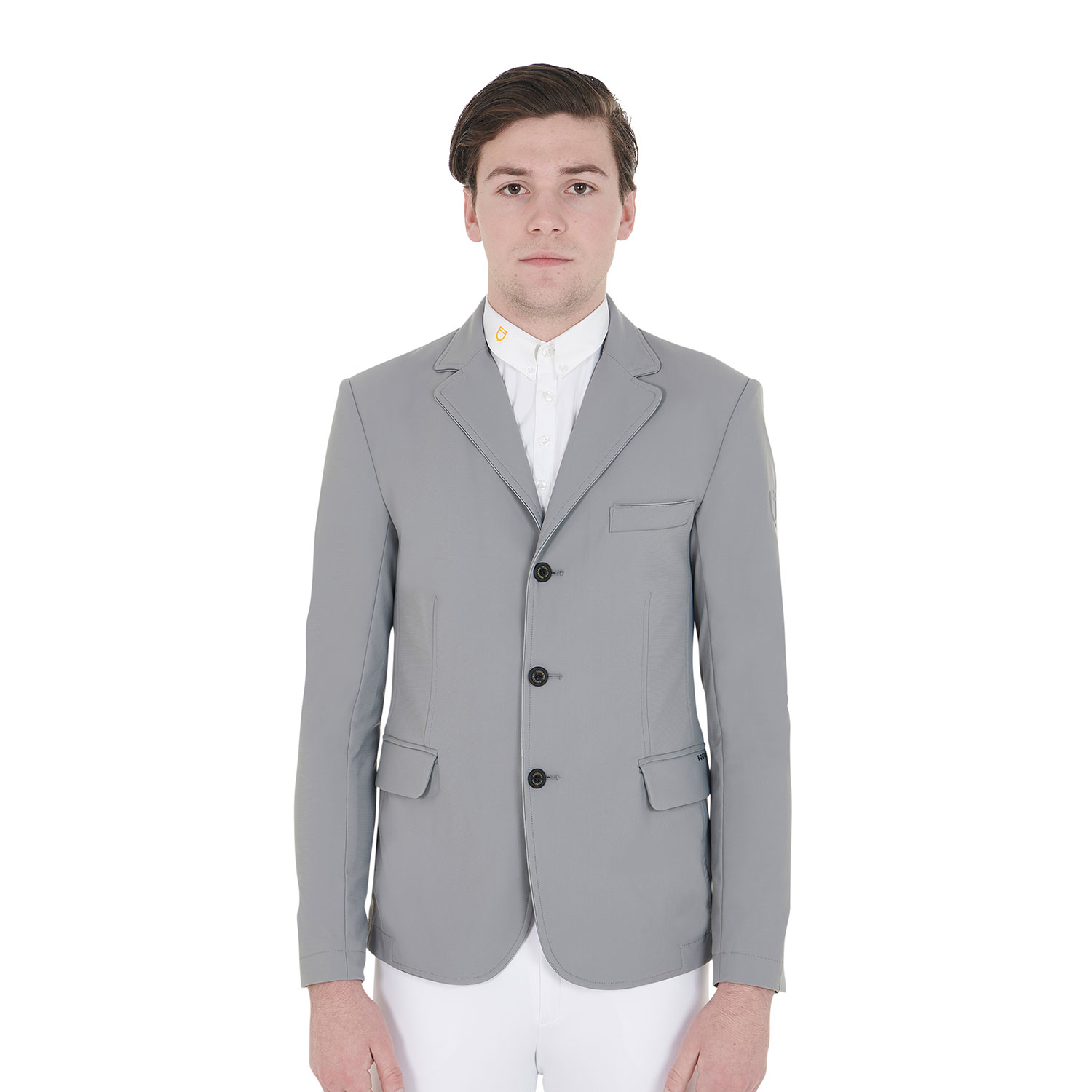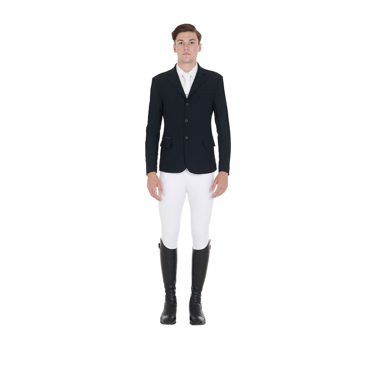 Veste de concours homme coupe slim avec poche latérale zippée. Fabriqué en tissu technique respirant pour assurer un ajustement impeccable.