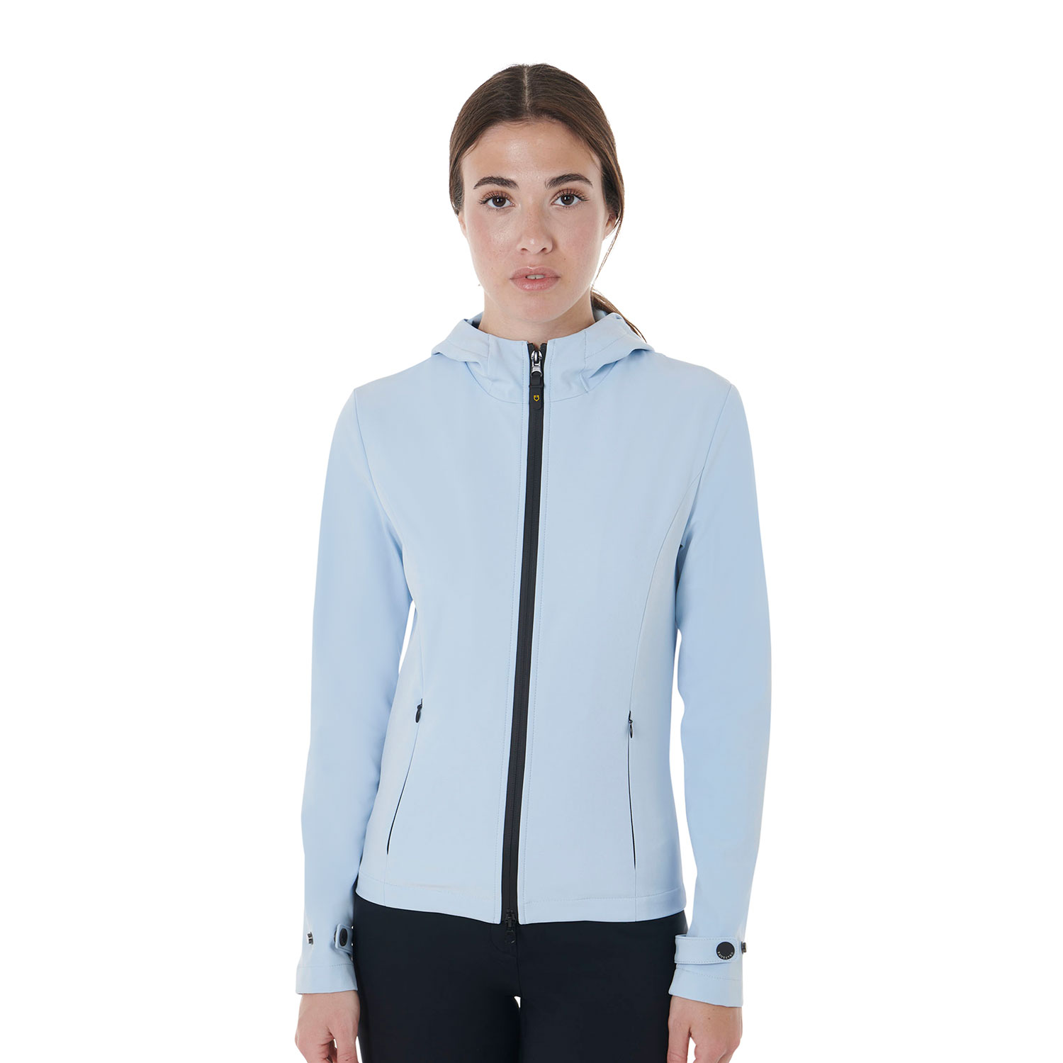 Veste softshell ajustée pour femme avec fermeture zippée coupe-vent, capuche et poches latérales zippées. Fabriqué en tissu technologique.